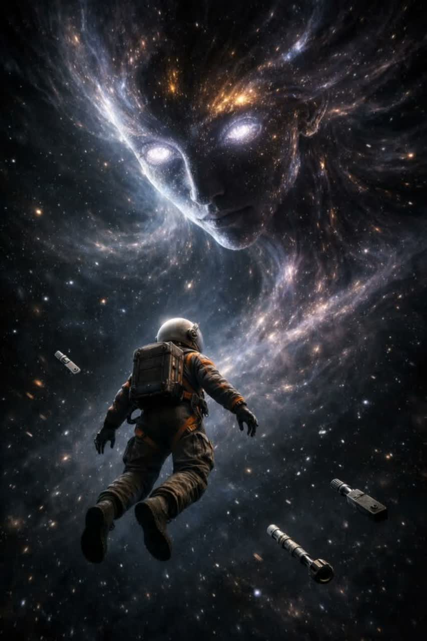 an intense experimental progressive rock song: starts with a driving 5/4 time signature riff, shifts into a nu metal‐fusion section, then descends into a quiet sci-fi horror ambient break, culminating in a chaotic multi-instrument climax — vocals are expressive