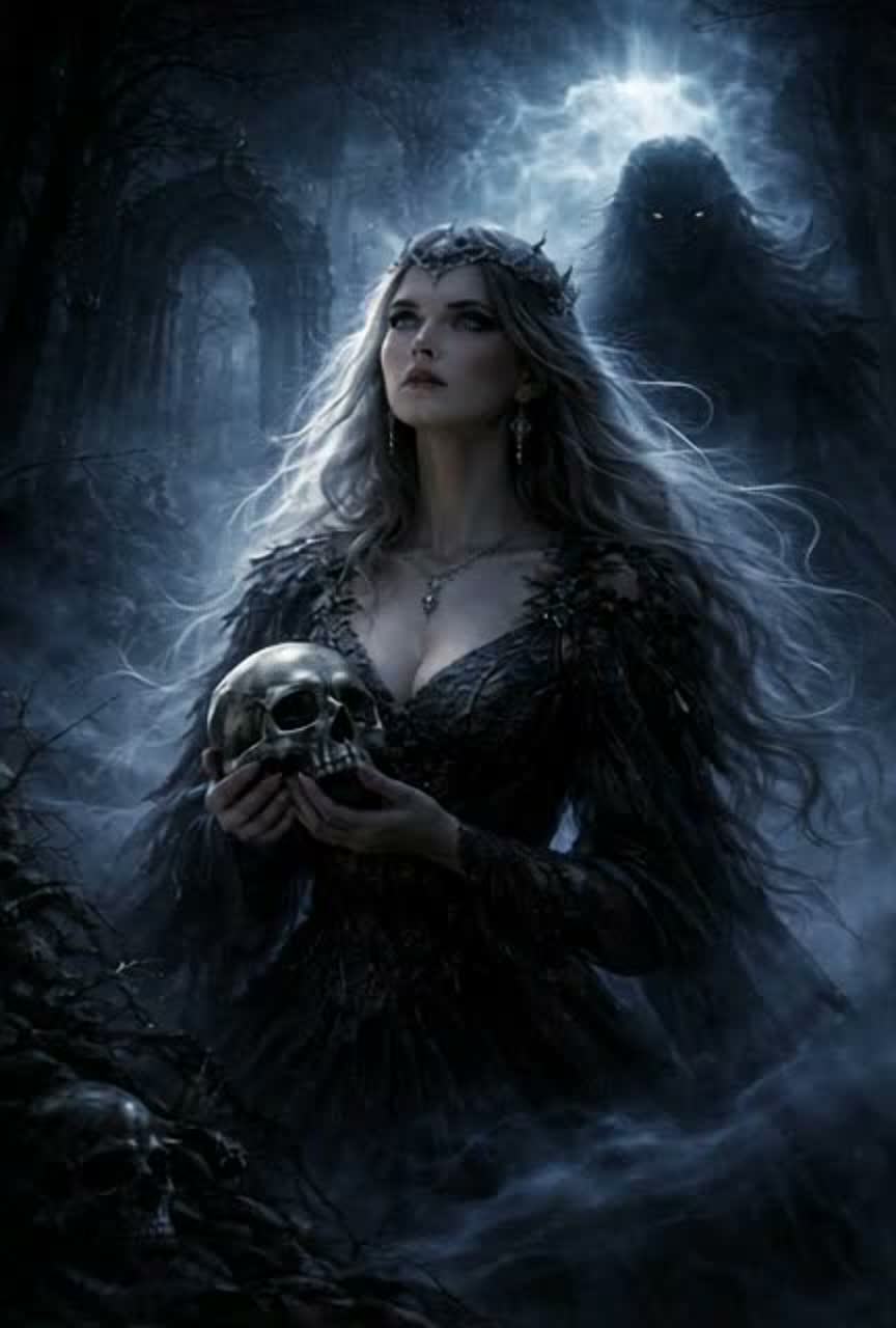 Dark Ritual Folk × Cinematic Dark Ambient × Gothic Chamber, 70 BPM, DUET ONLY, STRICT ORDER, NO OVERLAP, CLEAR VOICE SEPARATION, “STRICT NO HARMONY OVERLAP, CLEAR SOLO LINES ONLY” Female: emotional, haunting, controlled but powerful, Male (Death): deep, calm, ominous, unsettling but not aggressive, Atmosphere: cold night, fog, eerie calm, subtle horror tension, spiritual unease, Instruments: deep piano, low cello drones, dark strings, slow heavy drums (heartbeat + ritual hits), distant bells, subtle choir whispers, ambient pads, occasional low boom impacts, Structure: Intro ambient whispers, Verse female, Pre female, Chorus female (stronger), Verse male, Pre duet (alternating lines only), Chorus duet (separate lines), Bridge male whisper (very dark), Final Chorus female (intense), Outro fading drones, Theme: death as presence, transition, quiet dread, Production: cinematic, wide stereo, dark, organic, no EDM, no pop, no autotune, more low-end, more tension, slightly haunting