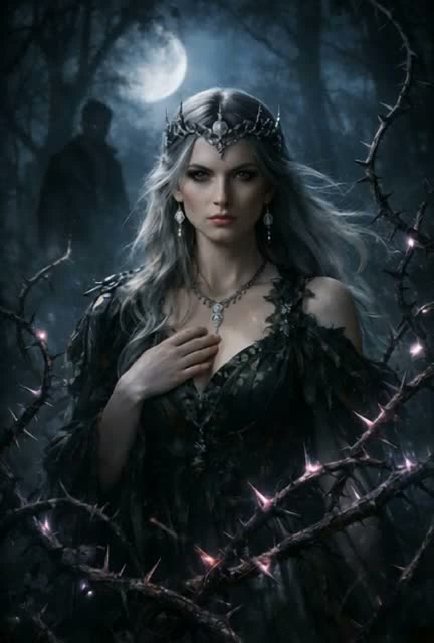 Dark Mystic Folk × Ritual Cinematic × Gothic Celtic, 88 BPM, Female lead (Titania): emotional, clear, powerful, rising from soft to strong, Male voice (Oberon): deep, calm, controlled, slightly cold, STRICT DUET ORDER, clearly separated voices, no blending, Atmosphere: enchanted forest at night, wind, distant whispers, Instruments: harp, low strings, tribal drums, soft piano, atmospheric pads, subtle bells, Structure: Intro (ambient whisper), Verse female, Pre, Chorus female, Verse male, Pre duet, Chorus duet, Bridge (spoken + emotional build), Final Chorus female dominant, Outro ambient, Theme: toxic love, manipulation, breaking free, inner strength, Cinematic, organic mix, no EDM, no pop, wide stereo, emotional climax