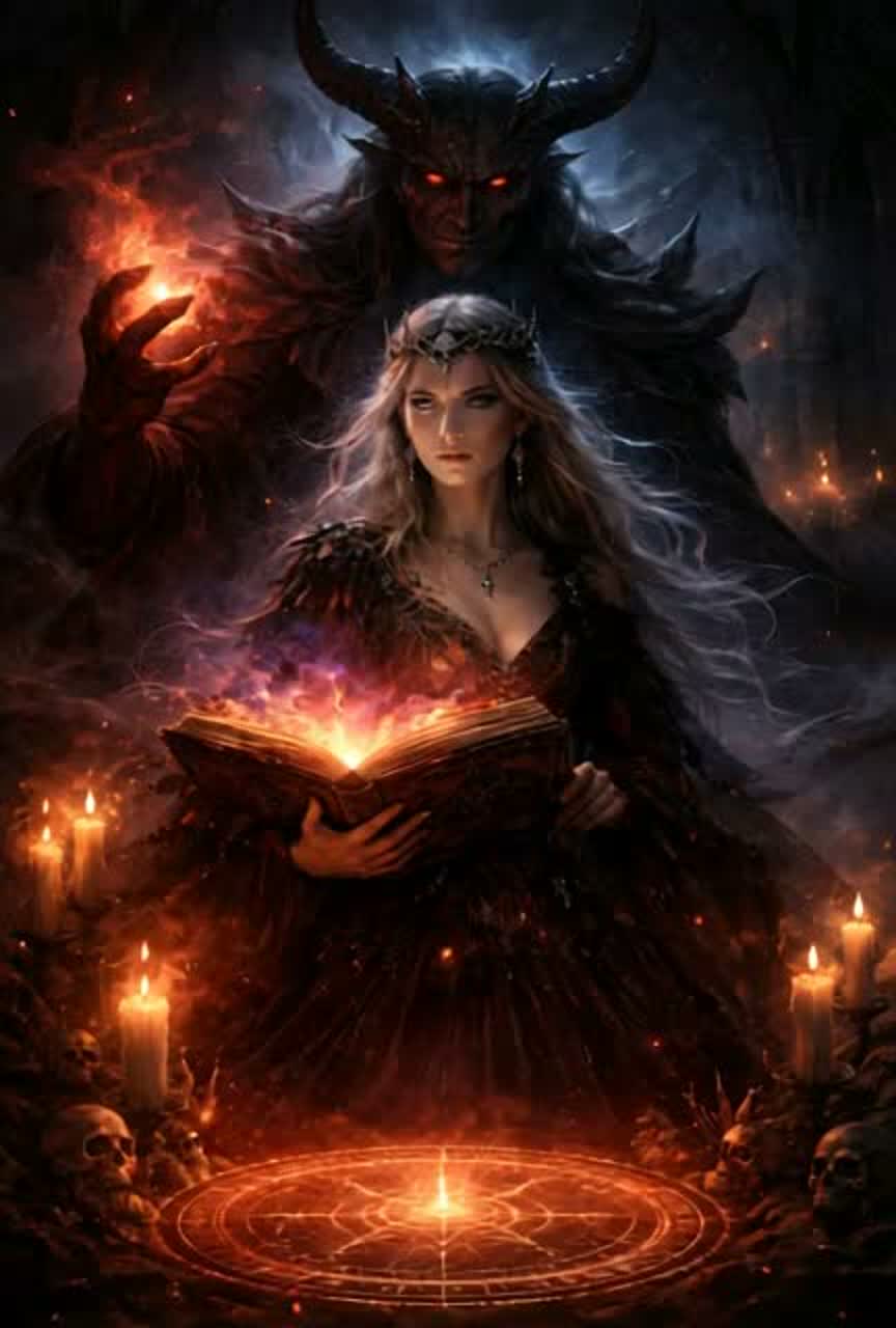 Dark Mystic Folk × Cinematic Ritual × Gothic Ambient, 85 BPM, DUET ONLY, STRICT ORDER, CLEAR DISTINCT VOICES, NO BLENDING, Female (Faust): emotional, searching, soft to powerful, expressive, Male (Mephisto): deep, calm, dark, seductive, controlled, Atmosphere: night, wind, whispers, occult tension, pact energy, Instruments: low strings, deep drums, subtle piano, ambient pads, dark choir (background), bell tones, light metallic hits, Structure: Intro (ambient), Verse female, Pre female, Chorus female, Verse male, Pre duet (alternating), Chorus duet, Bridge (whisper male + emotional female), Final Chorus (female dominant, male echoes), Outro (dark ambient fade), Theme: pact, inner conflict, desire, temptation, soul vs knowledge, Production: cinematic, wide stereo, organic, no EDM, no pop, no autotune, dark, immersive, “clear alternating focus between female and shadow figure”“