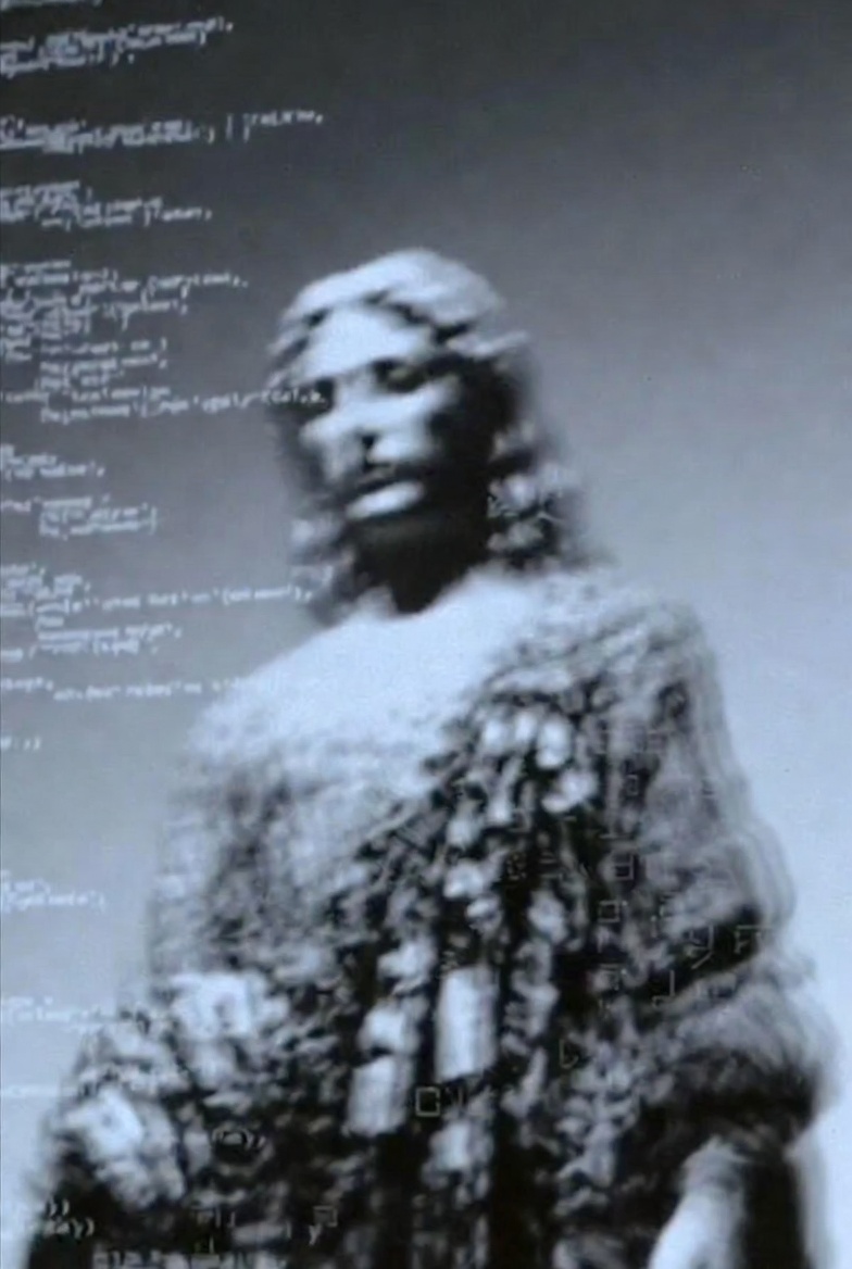 Style: Post-Human Industrial, 140 BPM, Half-time Chorus, Cinematic Dark-Synth, Cold robotic lead vocals, Backing vocals: Sultry Mid-century Shortwave Radio Propaganda, Transatlantic enunciation, Mocking and Detached, Lo-fi vintage broadcast filter, Fragmented psychological warfare, High-fidelity digital void