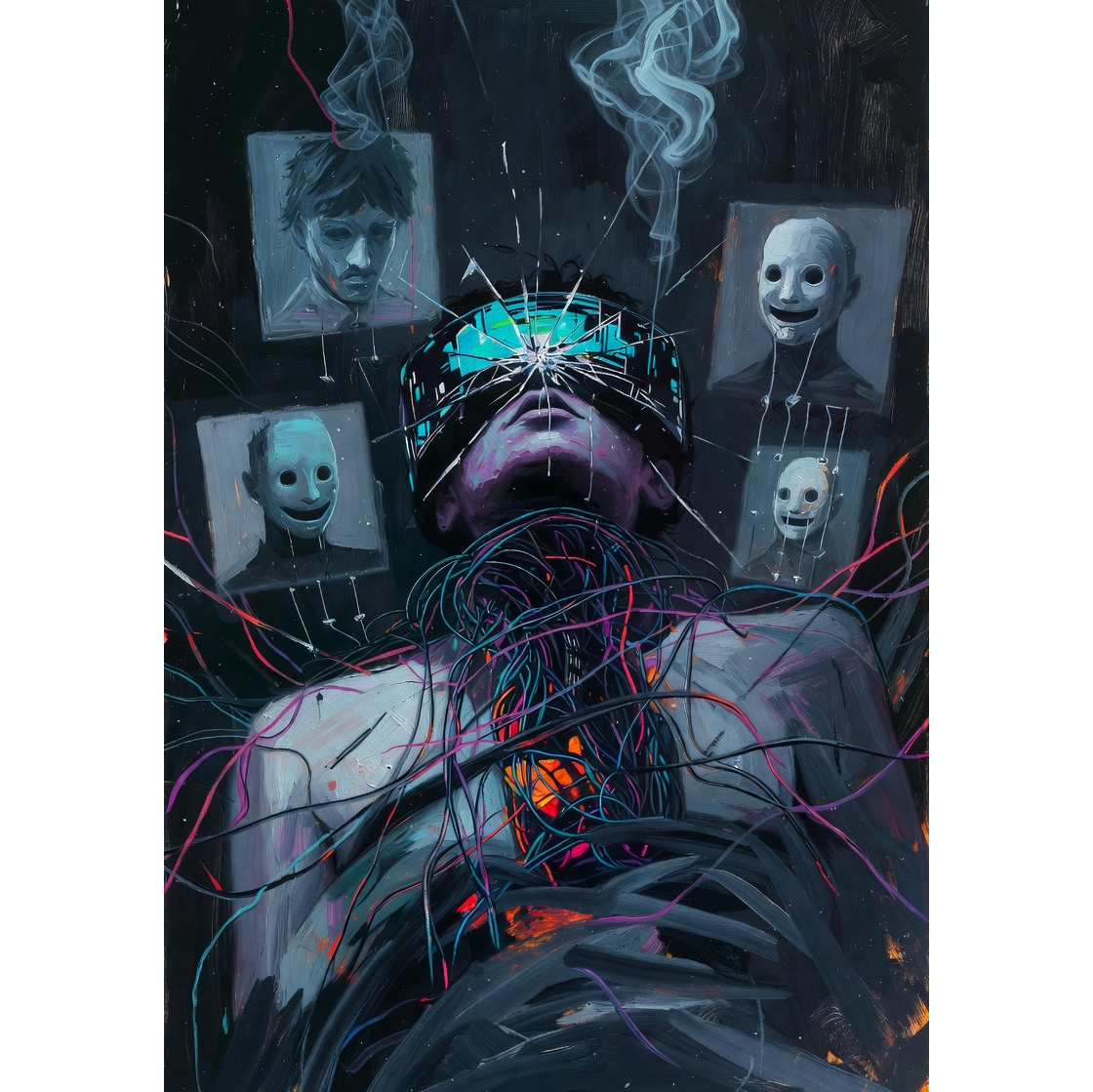Tempo ~78 BPM, Dark grunge/alt-metal beat with layered, drop-D guitarsβclean and haunting in verses, thick distorted walls in chorus, Bass deep and gritty, drums punchy but sluggish, heavy tom accents, Add eerie vocal harmonies drifting slightly out of tune for tension, Reverb-drenched whispers and subtle reversed guitar textures build paranoia, Bridge grows chaotic with feedback, dissonant bends, and rising noise, End fades into static, heartbeat-like bass pulse, and distant breaths, Mood: introspective, unraveling, heavy, haunted
