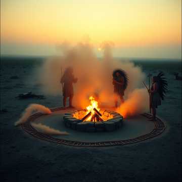 Native American flute intro, meditative atmosphere, transitioning into Pow Wow Step, rhythmic chanting, Barbatuques-style body percussion, deep tribal drums, heavy synth bass, 128 BPM, cinematic EDM, ethnic fusion, War Cry, modern deep house