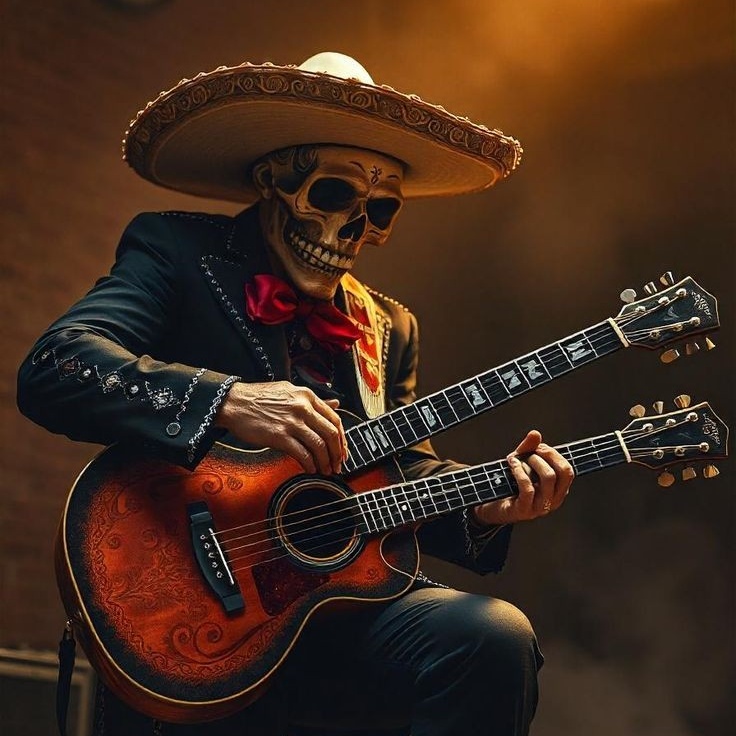 Mariachi, allegro, Mexican rhythm, trap, psychedelic folk, mariachi, guitar chords, house, hard trance, german techno