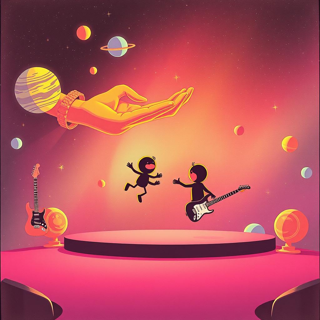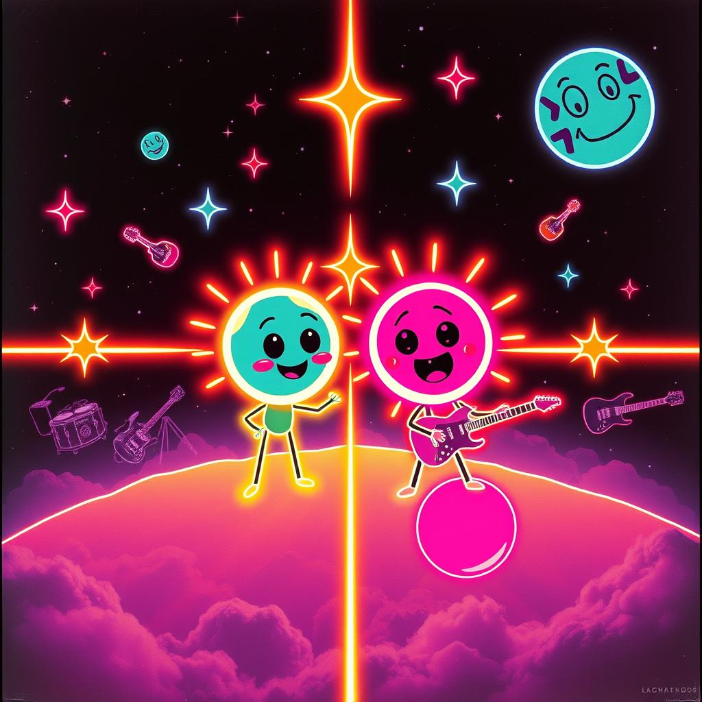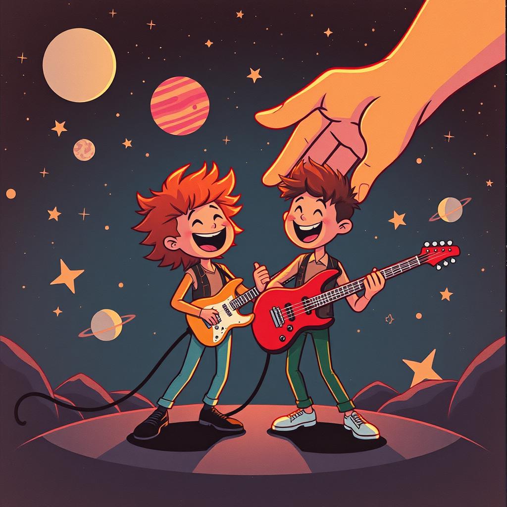 high energy german comedy rock anthem, distorted guitars, driving rock drums, melodic bass, humorous lyrics about cosmic soul connection and destiny, charismatic male rock vocals, huge catchy chorus with gang shouts, explosive guitar solo, stadium rock energy, 90s fun rock vibe, playful lyrics