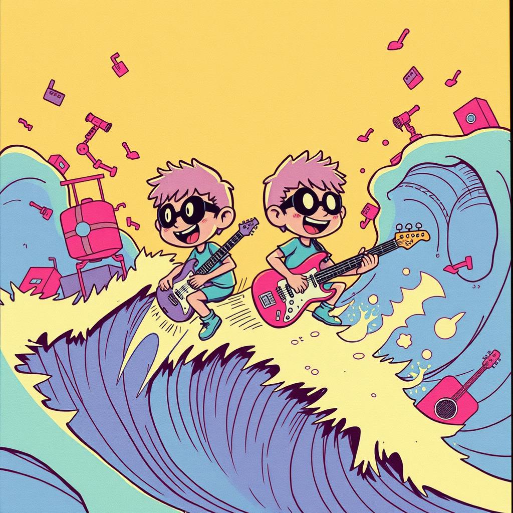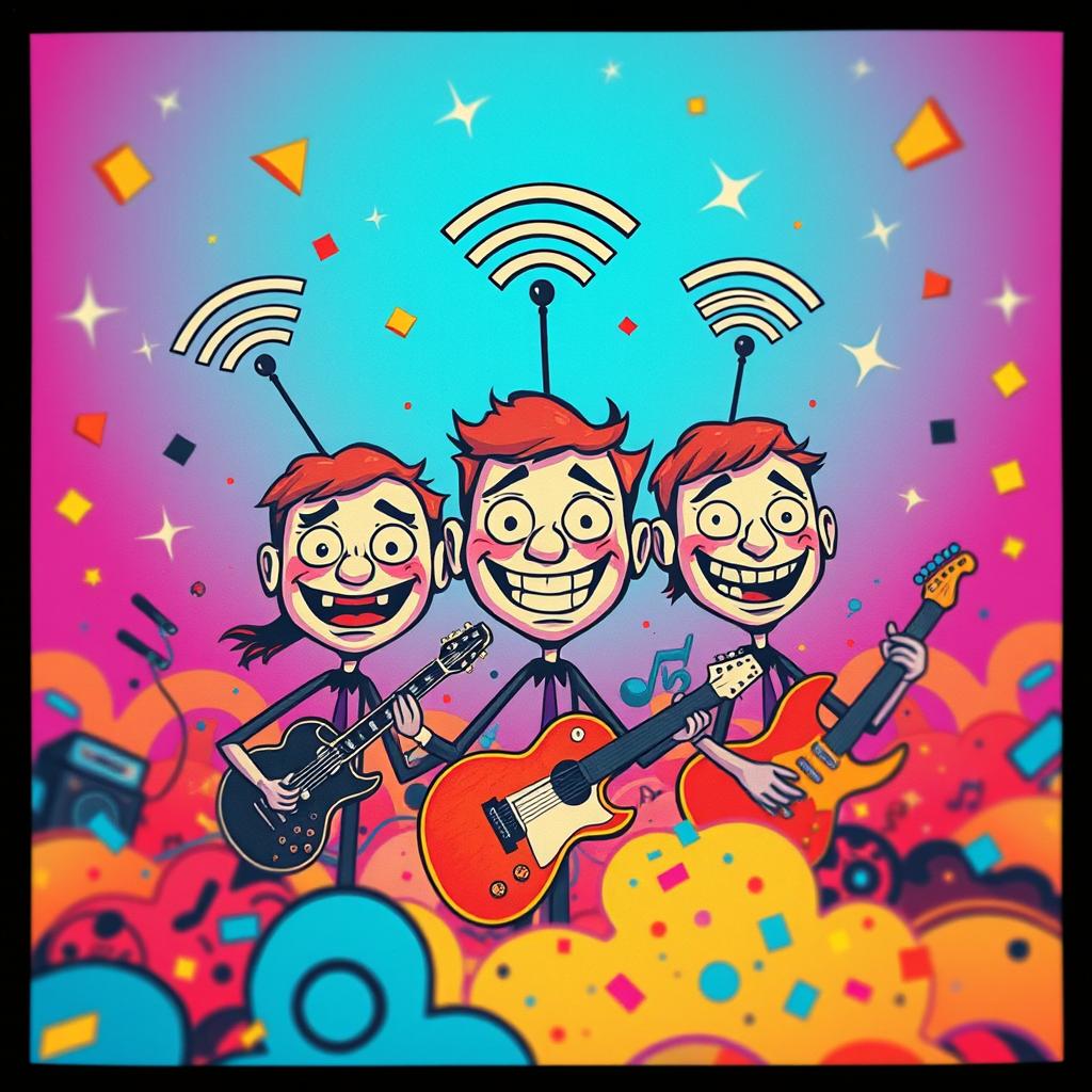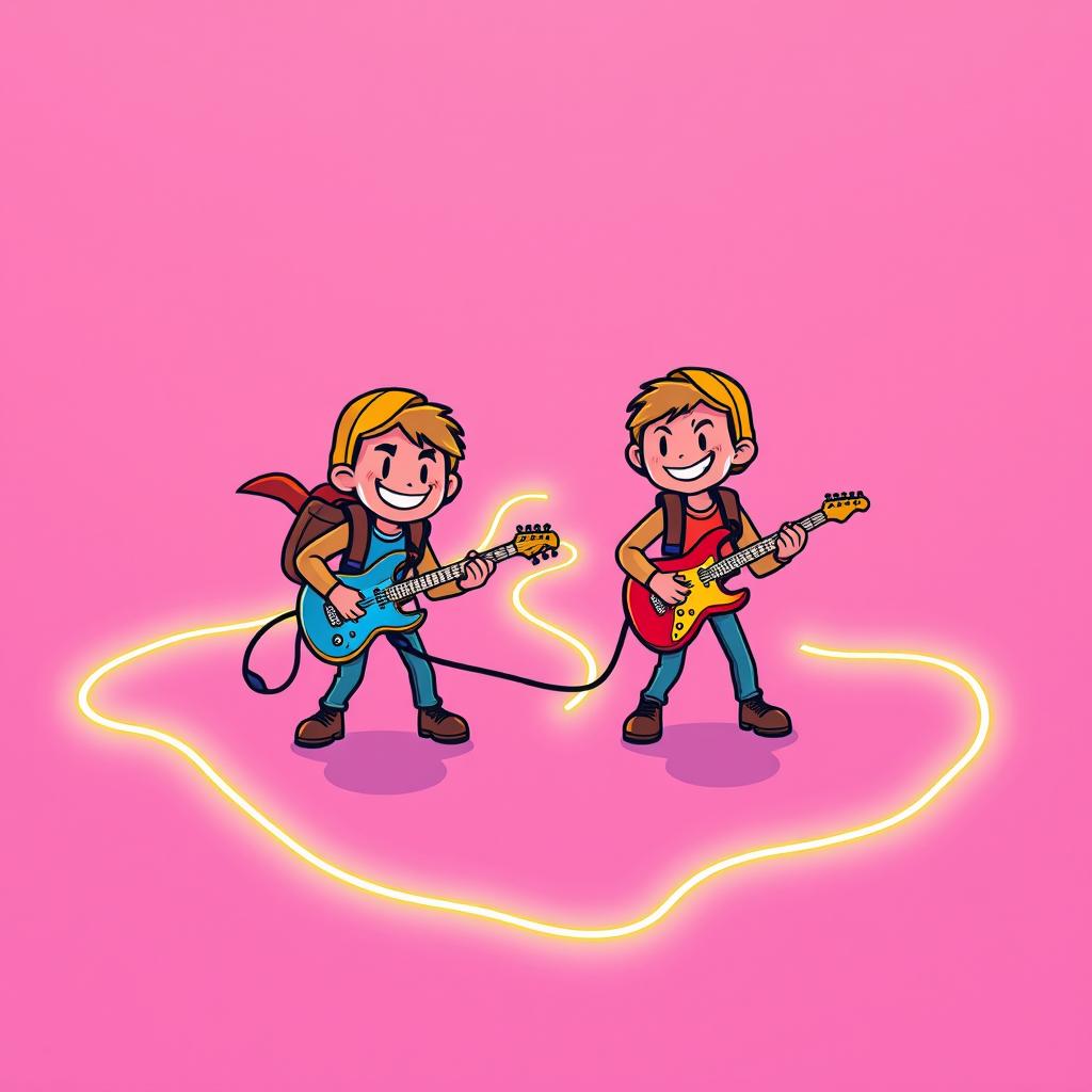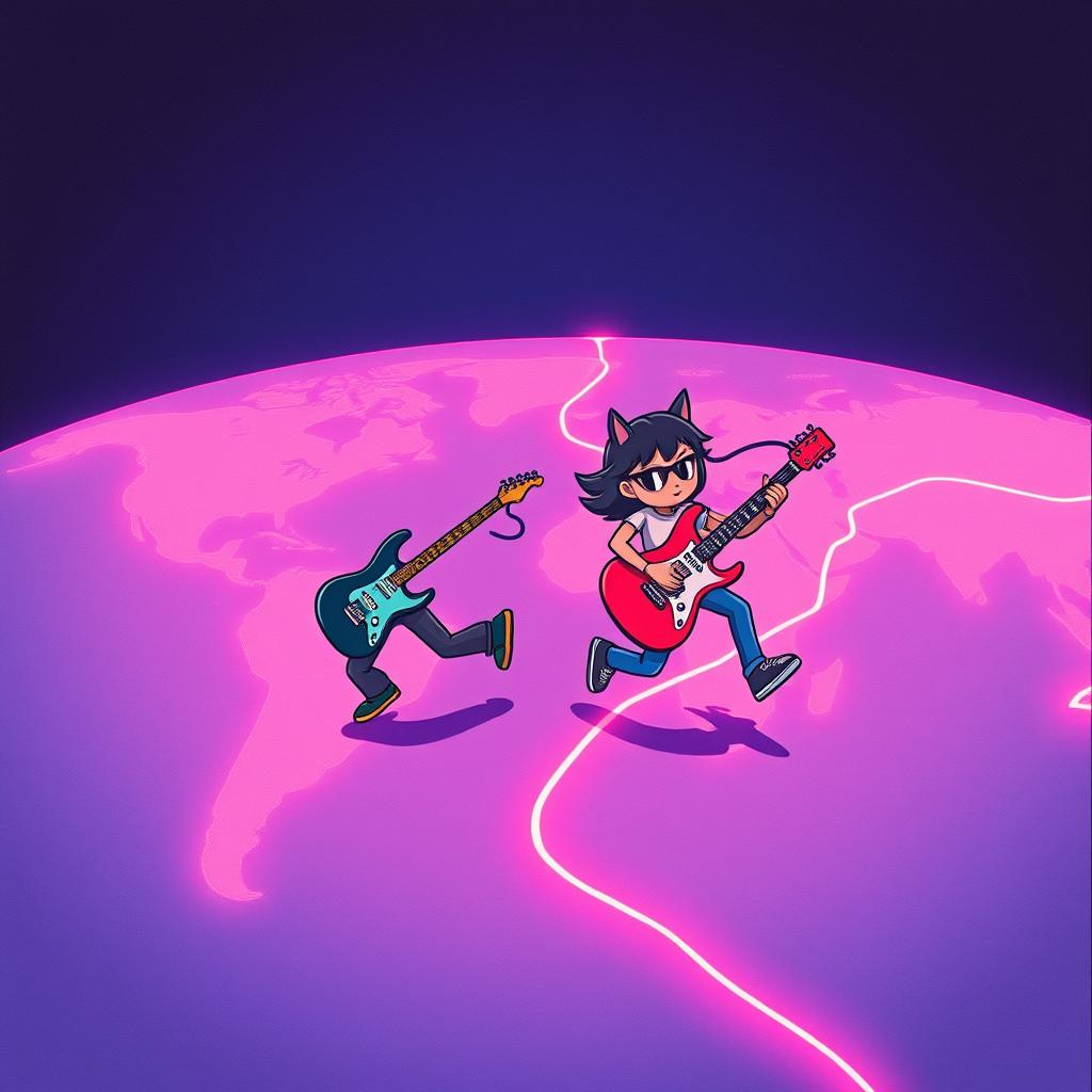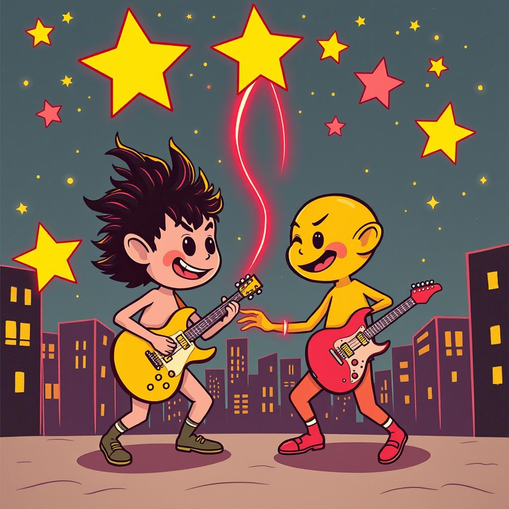 upbeat german comedy rock, energetic distorted electric guitars, punchy drums and bass, humorous storytelling lyrics about two souls connected by an invisible red thread across the world, playful male rock vocals with attitude, catchy stadium singalong chorus, big guitar solo, 90s fun rock production, lively party atmosphere