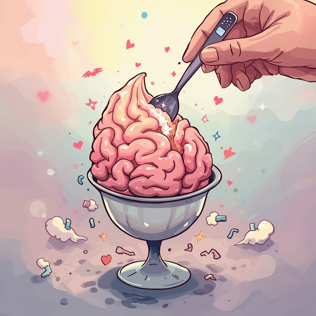Melancholic dark pop / electronic track with evolving mood, Start very minimal and depressive: slow tempo, soft drums or no drums, muted piano and pads, tired male vocal, like a lonely addict on a dopamine crash, Then slowly add more synths, bass and rhythm as he chases stronger and stronger “highs” – darker, heavier, almost industrial electronic sections with distorted elements and tense drums, At the lowest point, drop almost all drums into a cold, empty ambient part, just voice and a few sad chords, to feel like withdrawal and despair, In the final part, bring back a warmer, slightly more hopeful dark pop groove: still melancholic, but with softer chords and a more emotional, intimate feeling, as he finds another broken person and they become each other’s “gelatopamine”, No epic orchestral, no metal, no rock band – keep it electronic, intimate, modern and emotional