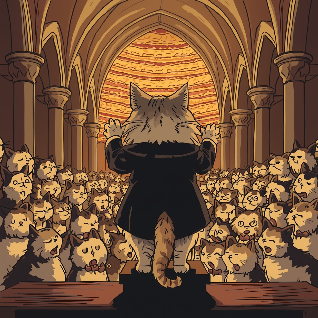 Epic choral + symphonic black metal; male and female choir, low growls in verses, blasting drums, tremolo guitars, symphonic strings and horns, cathedral reverb, huge cinematic mix, Tempo 150–170 BPM, key D minor, Crowd-sized chorus chants