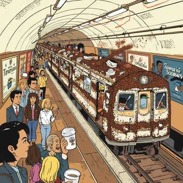 Part I: smooth jazz / soul ballad – soft piano or sax, warm deep male vocal, smoky jazz club mood, romantic and melancholic, tempo ~70–80 BPM, key A minor or C minor, intimate reverb, Part II: transition – jazz elements detune and distort, rising low rumble, subway train SFX, tension build, Part III: brutal hardcore / metalcore – fast distorted guitars, blast beat drums, aggressive screaming vocals mixed with occasional panicked clean lines, huge breakdown with gang shouts repeating “CRAPSTORM CATASTROPHE!”, very dramatic and cinematic, tempo jumps to ~180–200 BPM, Entire track is humorous and over-the-top: tragic love for tiramisu turns into a “toilet apocalypse” on a crowded metro; keep it intense but fun, not gory