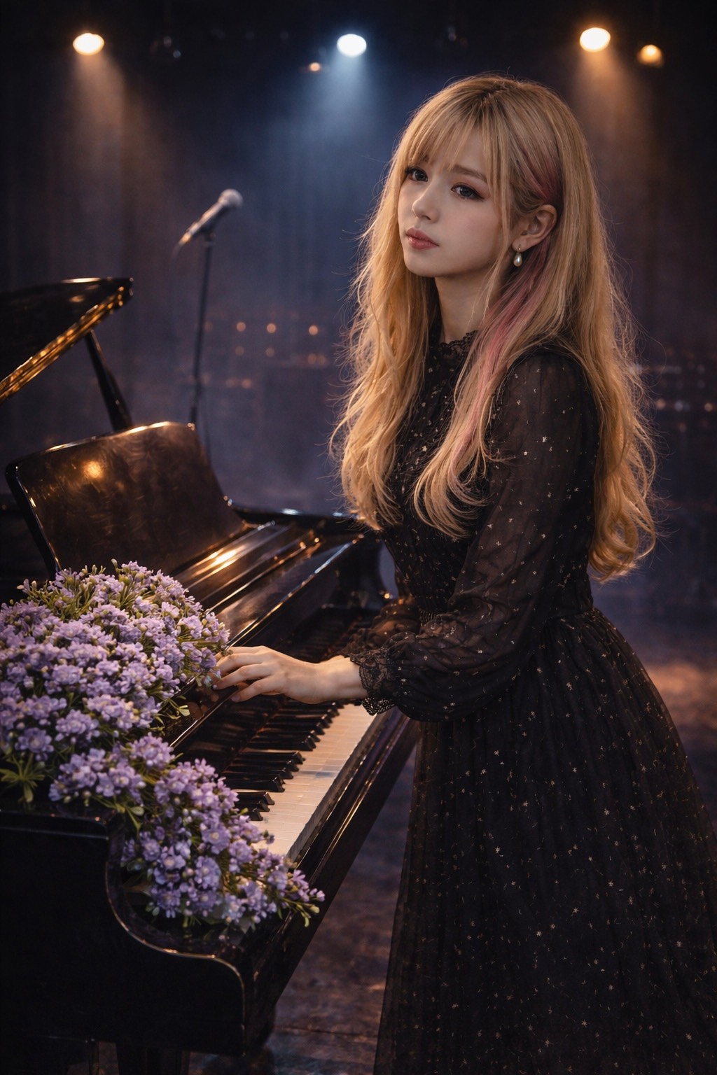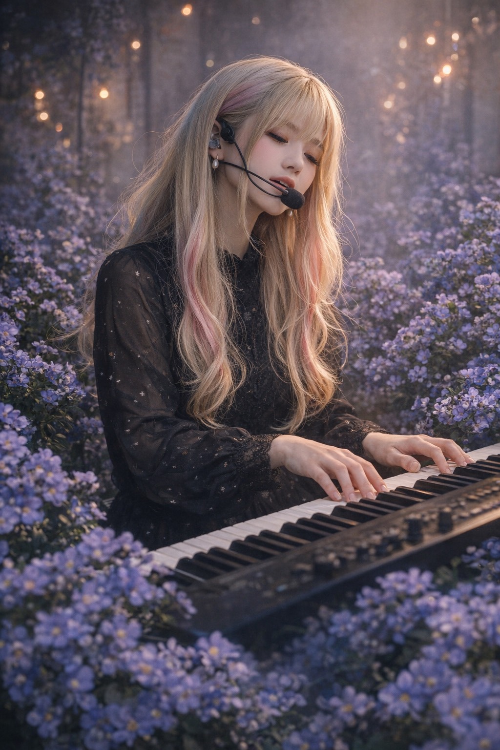 AI-generated sparkling electro hardcore track with emotional depth, Bright shimmering keyboard sounds (bell, glass, FM synth, high register, clean, sparkling tone), replacing all guitars while keeping riffs exactly unchanged, Deep soft sub bass, Tight electronic drums, light punch, minimal ambience, Keep original arrangement, melody, key, tempo unchanged, No rearrangement, Female vocal: girly, cute, whispery, breathy, very soft, intimate, close-mic, Low energy, flat dynamics, no belting, no shouting, Beautiful, fragile, glowing, melancholic, Controlled emotion, no dramatic peaks