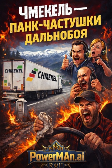 Fast chaotic Slavic punk song with humorous trucker satire, Style: raw garage punk mixed with Russian folk chastushka rhythm, Very energetic tempo, rebellious mood, sarcastic humor, Male shouting vocals and gang chorus, Instruments: distorted electric guitars, aggressive bass, fast punk drums, accordion riffs, balalaika accents, tavern crowd chants, Theme: truck driver telling absurd road jokes about a chaotic logistics company called “Chmekel” and its ridiculous dispatchers: Serjozha Shustry, Tanyukha “O-Kuet”, and Andreas Dikiy, Story full of dark humor about impossible schedules, waiting in random fields, crazy mileage and constant phone calls, Atmosphere: diesel engines, highways at night, truck stops, rebellious laughter, anti-bureaucracy punk anthem, High energy, chaotic and funny