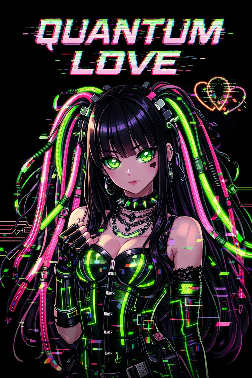 Cute female vocals, Industrial, jungle, pop, punk, noise, cyberpunk, metal, electropop, hip-hop, experimental, Production: glitch-heavy sound design, distorted bass, metallic percussion, industrial machine hits, noisy textures, digital artifacts, and sudden dynamic shifts, Include jungle breakbeat fills, punk-style rhythmic aggression, and electronic pop hooks that cut through the chaos, EDM leads