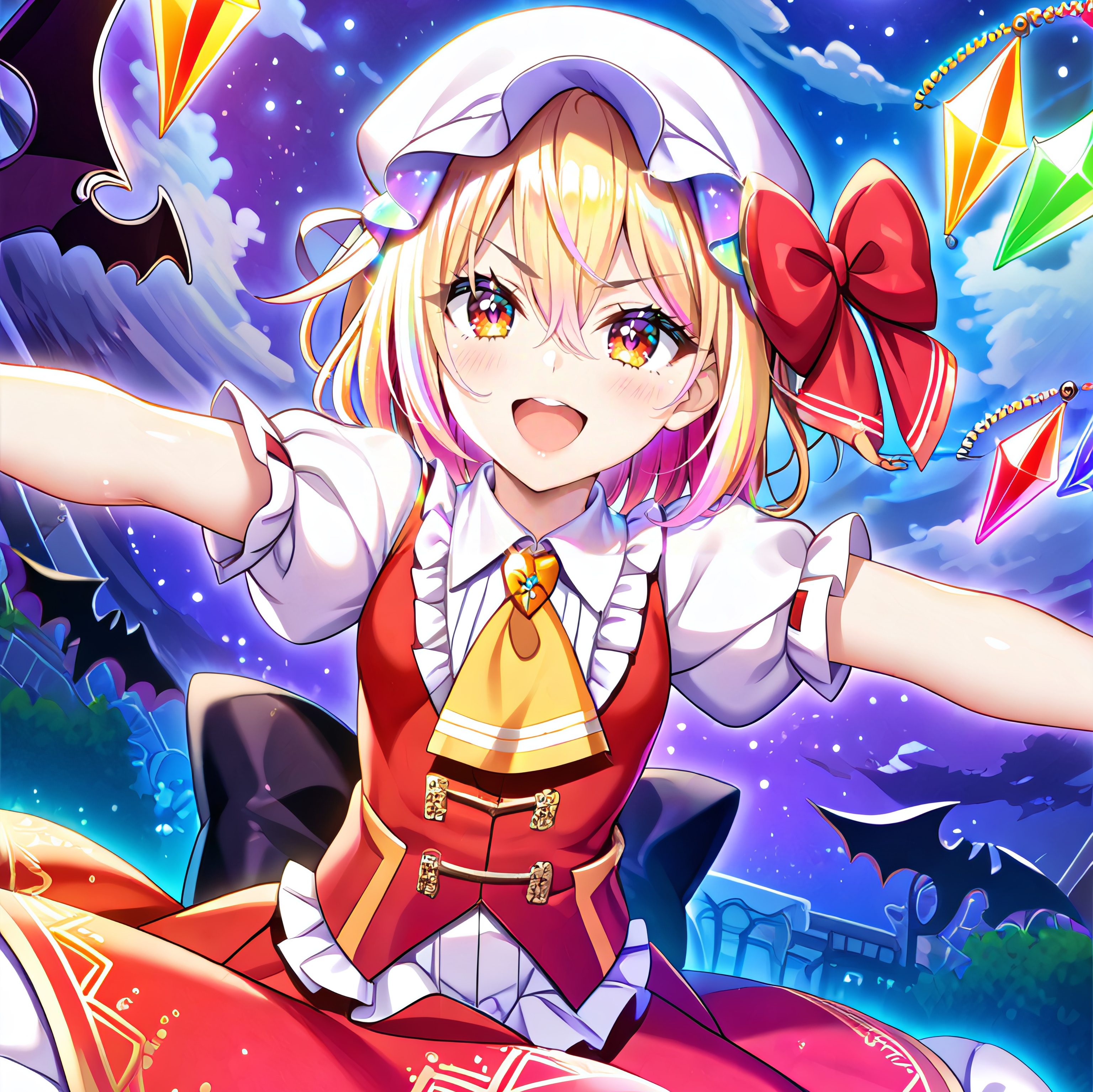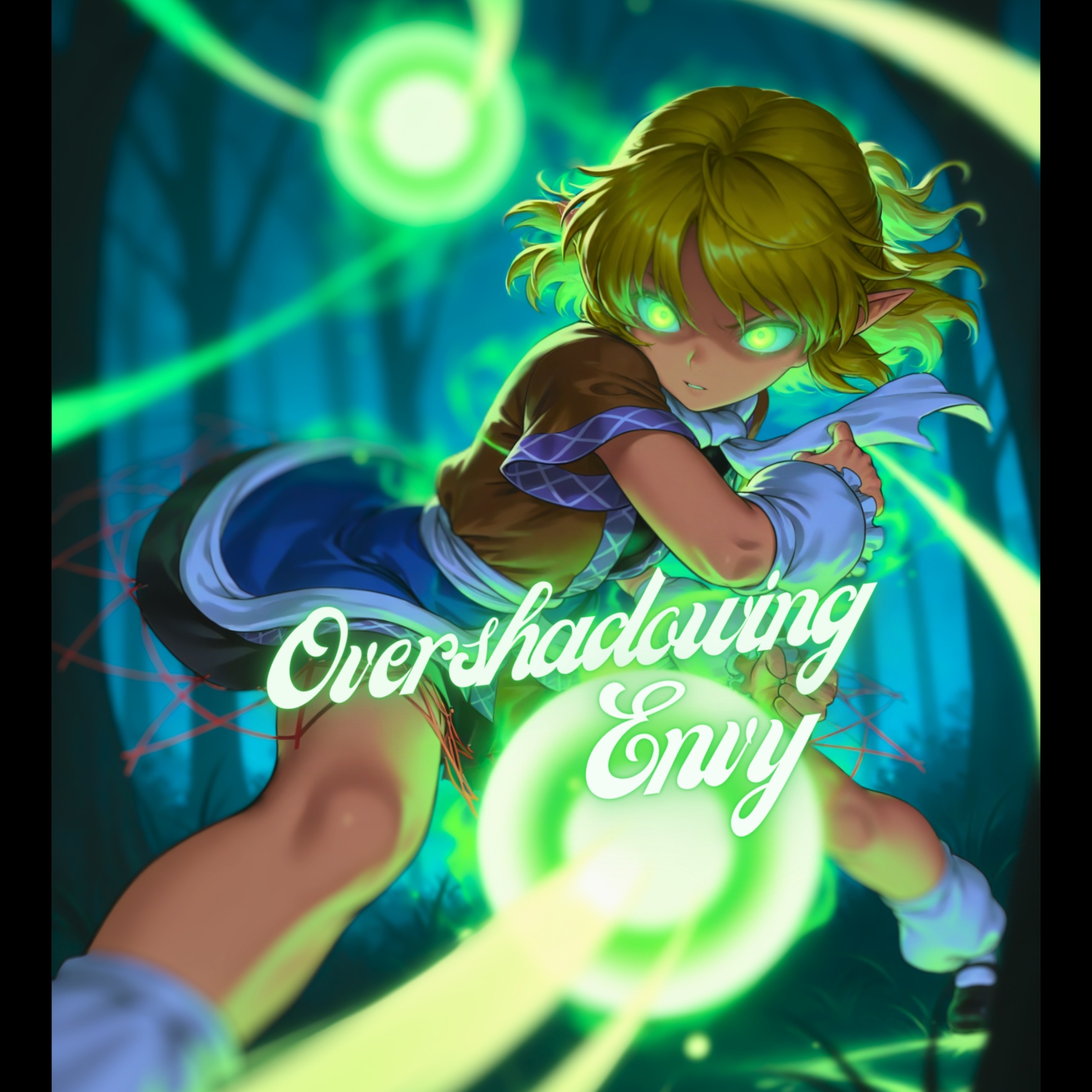 pop, modern, fast paced, intense, bass, psytrance, soft voice, glitchcore, glitch, female singer, intense, electro, hardstyle, frenchcore, trumpets, piano, TouHou, ZUN