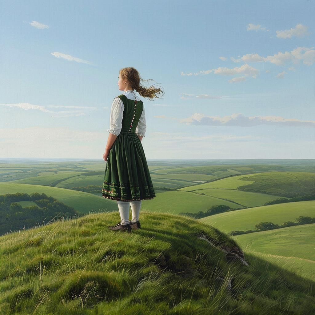rock, Alt-rock band with female mezzo-soprano, sharp Limerick accent and flashes of yodel; jangly, chorus-soaked guitars over a locked, martial snare-and-floor-tom groove, Verses swim in hazy dream-pop reverb, Celtic fiddle weaving modal lines behind the vocal; bass stays hypnotic and droning, Choruses explode into overdriven octave riffs, shouted gang vocals, tom-heavy drums that feel like a street march, Bridge strips to near a cappella sean-nós keening with faint drone and subtle feedback swell, then the full band slams back in for an extended outro of wordless yodel-like cries over rising guitars, celtic, a cappella, moody, pop