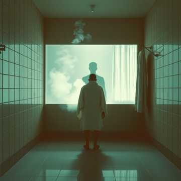 Cinematic tragicomedy ballad with Monty Python absurd humor, Start with lonely echoing piano and soft bathroom ambience, Slow melancholic tempo, Add comedic orchestral strings and light backing vocals as foam and fantasy rise, Before climax, add rising dramatic chant in background, At climax use a single timpani hit with no vocals, After climax, drop to cold minimal piano with flicker-like ambience, End with whimsical comedic tones, Emotional arc: sad → absurdly epic → pathetic → bittersweet