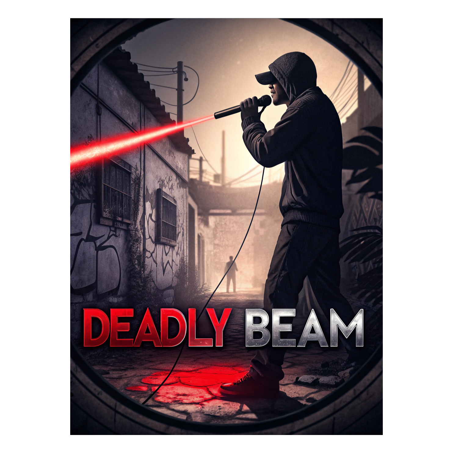 Aggressive trap beat with punishing 808s, rapid-fire hi-hats, and saturated, distorted kicks anchoring a relentless groove, Piercing cowbells and sharp glitch FX punctuate transitions, The soundscape is cinematic and dark, perfectly complementing a ferocious, multi-syllabic male rap flow