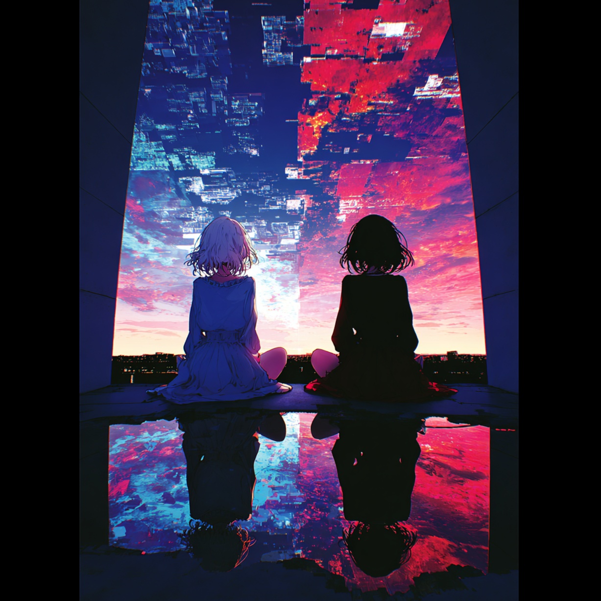 dreamy and emotional Japanese city pop composition with layered analog synths (Prophet-5, MS-20), saturated funky fretless bass, and syncopated glitchy drums blending brushed snares and digital artifacts, The track should build a surreal atmosphere with ambient pads, low rumble FX, and subtle static crackle, evoking an urban night in emotional slow-motion, Incorporate whispering vocals, layered harmonies, spoken word interludes, and detuned fragments to express the dissonance between memory and perception, Use reverse tape effects and filtered echoes to fragment time, The structure must evolve dynamically—fading in and out like a dream, with sudden clarity emerging from sonic fog, Capture both isolation and wonder, Aim for the emotional tension of a storm that never breaks, and the intimacy of a voice heard through walls
