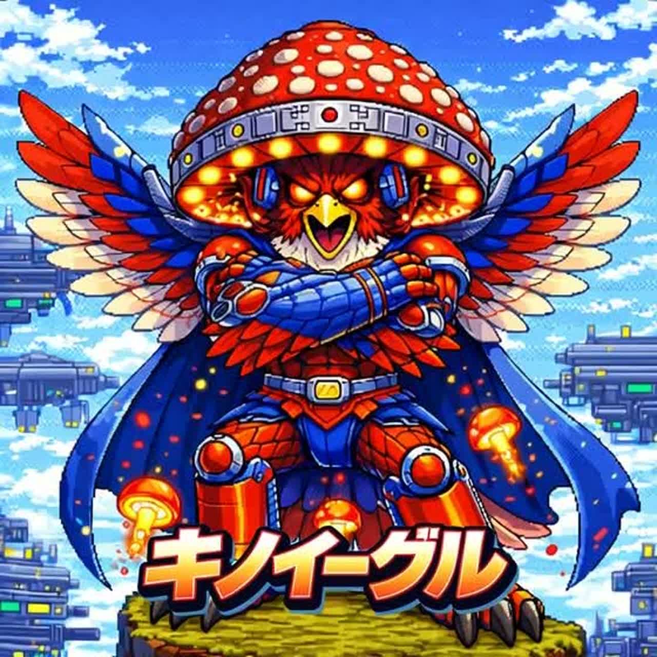 8-bit chiptune, NES style, fast speed, battle, industrial, hero, retro game music, minor key, CheapDrumMachine, Tr-808, nostalgic but dark, march-like rhythm, simple melody, boss battle, sky image, rival, Stoking