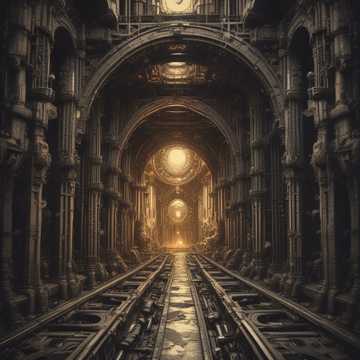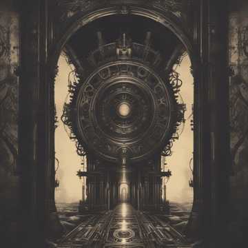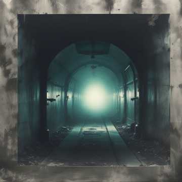 horrifying, atmospheric; heavy guitars, dark, and eerie ambient textures, grinding industrial beats, deep guttural male vocals, metal, industrial