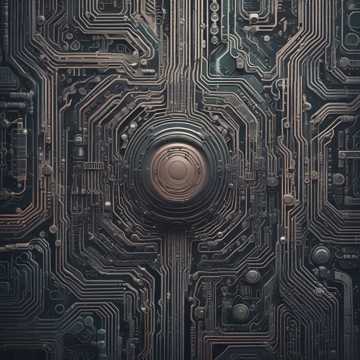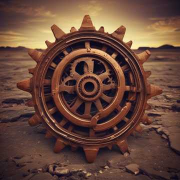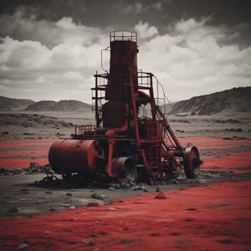 eerie synths, dark, industrial metal with earthy undertones; layered distorted guitars, atmospheric, heavy percussion, metal, male vocals with guttural growls and whispers for contrast, industrial