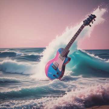 dynamic tempo shifts, hot hard-hitting beats, dramatic atmosphere with reverb-drenched guitars and pulsating synths, surf rock meets techno, rock, techno, dynamic, rhythmic tension, dramatic, beats