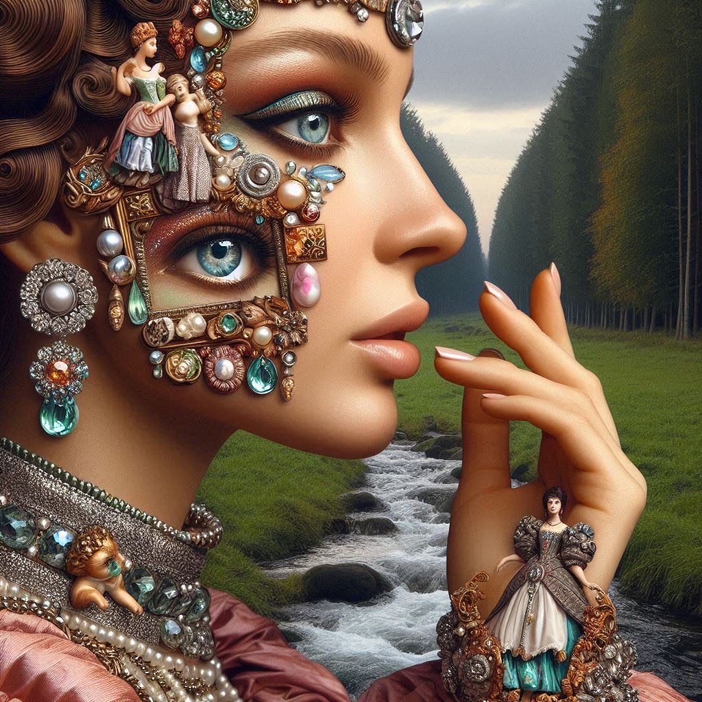 [Ornament: Reverse textures, tape-like warble, distant metallic hits; subtle Eastern-inspired tonal colors woven into modern pop grid, ]