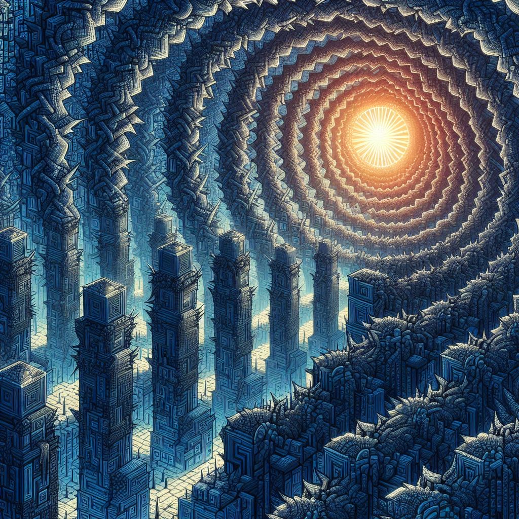 [Harmony: Massive stacked chant chords—modal, ancient intervals; each loop thickens and widens; tonal gravity pulls listener inward, ]