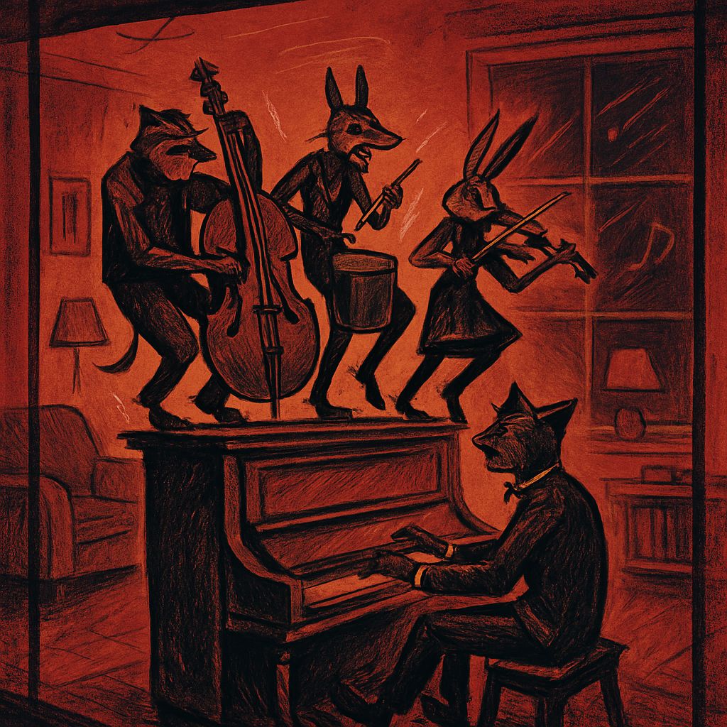 Create a crazy happy whispered track with a bouncy beat and an experimental sound just like a dream of human furries creating a hilarious uprising in crescendo to-the-top musical-like variation with various voice changes, extreme breath control, asmr effect while breathing, extreme male erotic whsipered Verses, over the top chorus, extreme eunuch vocals, loud breath, Instrumental: sanfte Streicher, Glockenspiel, leichte Darbuka, Hall ~1, 2, Vocal-style: “over-the-top eunuch”, tone: “nasal, leicht atemig, dünn”, range: “hohes Falsett (Countertenor)“, texture: “feines Vibrato, leicht rauchig”, emotion: “übertrieben theatralisch, charmant-komisch”