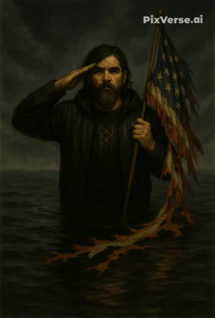 Produce an cineatic and atmospheric storytelling with extreme banjo doom metal featuring only slated banjo strings in lead disharmonie, a solitary, pulsing breakbeat and a droning bass weaving through the stereo field, Vocal comes in nonchalant deep baritone and slightly indian drawl like a laid back storytelling of desintresting, reflecting the surreal sight of a house swept away by a wild creek, experimental