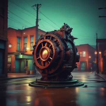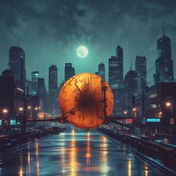 clicking and clattering mechanical percussion, buzzing electronic synth, trip-hop, lo-fi hip-hop, djent, bossa nova, turntable scratching, dark, melancholic, sad