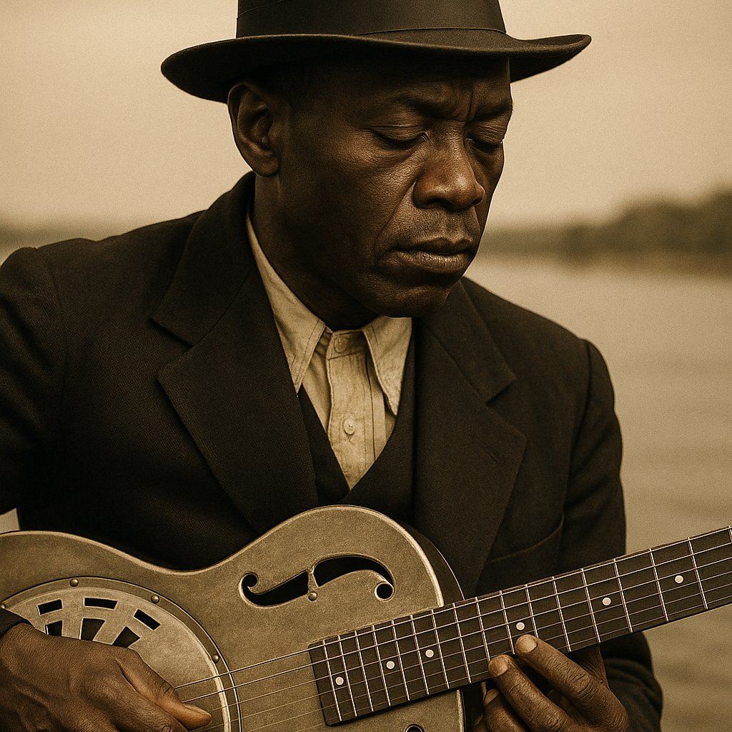 Delta blues, 1930’s mood, acoustic steel guitar by itself, Male blues man singer