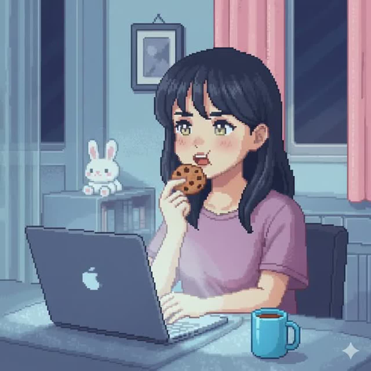 using minor 7th, major 7th, add9, and suspended tones, Very soft attack, smooth and warm, Tempo around 70–74 BPM, Light, airy chill pop atmosphere, No hip hop groove, No heavy bass, Bass should be very subtle, warm, and supportive only, Very minimal rhythm, using soft electronic pulse or light percussion, No strong kick, no snare hits, Wide, airy pads and gentle reverb create a late-night mood, Subtle lo-fi texture for warmth, but clean overall, Feels like being awake late at night, thinking quietly while working under soft screen light, Emotional, feminine, and introspective, Unobtrusive background music for night work and deep focus, Smooth loopable structure, Gentle fade in and fade out