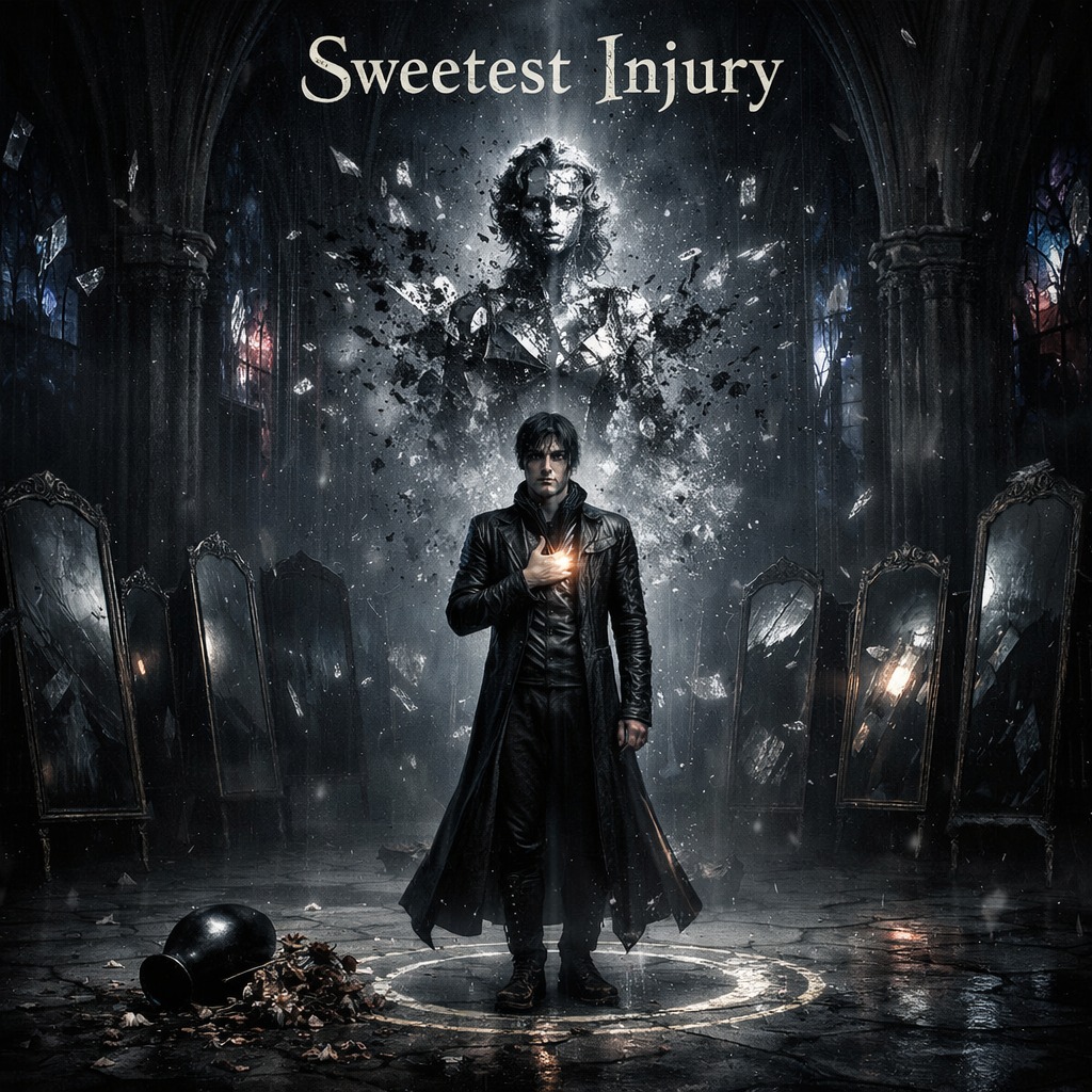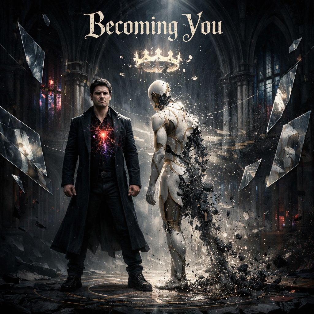 A fusion of symphonic darkwave, dark pop, and electro-gothic at 110 BPM in F minor, Cold synth pads, pulsing bass, gated drums, and sharp arpeggios drive the verses with controlled tension and emotional distance, The chorus opens into a cinematic lift with symphonic strings, low choir pads, and wider synth layers while staying cold, hard-edged, and precise rather than lush, Sparse piano accents and atmospheric guitar add depth without breaking the electronic core, The male vocal stays low, direct, and intense, moving from close-mic restraint in the verses to firmer, cutting release in the chorus, The drop and repeated bridge create contrast and pressure before the final chorus returns with heavier atmosphere and dark momentum, Production emphasizes deep low-mids, wide stereo space, clear vocal focus, controlled highs, and dense gothic atmosphere without glossy EDM sheen
