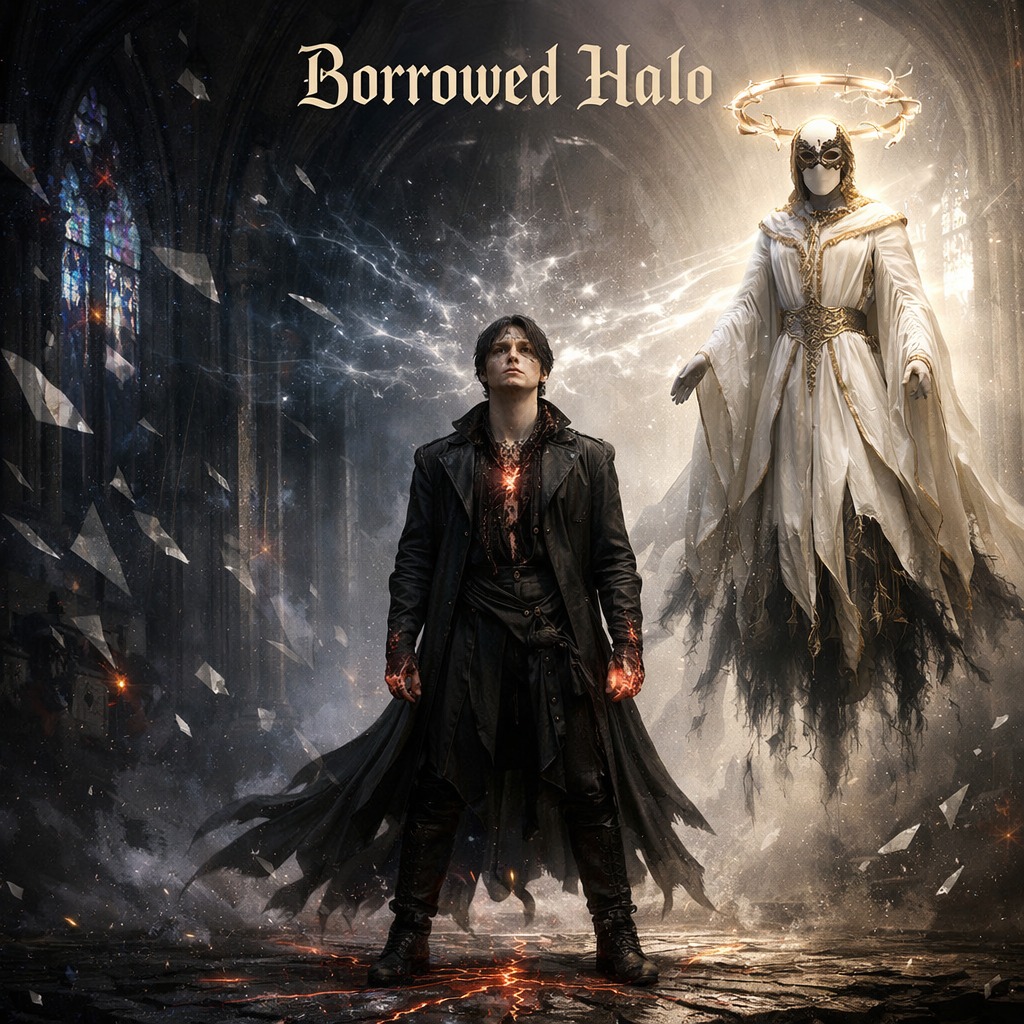 A dark fusion of classical music, dark pop, and cyber-gothic at 108 BPM in F minor, Wide dark synth pads and heavy low electric-guitar chords create an oppressive foundation, while strings carry the main melodic identity with sharp cinematic tension, Brass, especially trombones and French horns, adds hard swells and dramatic counter-lines that deepen the sense of menace and defiance, The male vocal should feel cold, focused, and unyielding, moving from tight, biting restraint in the verses to a forceful sung release in the chorus, In the solo, electric guitar drives the main melody while brass answers in counter-motion, with subtle strings underneath for fullness, The overall sound should feel elegant, hostile, ritualistic, and emotionally armed, with no uplifting release
