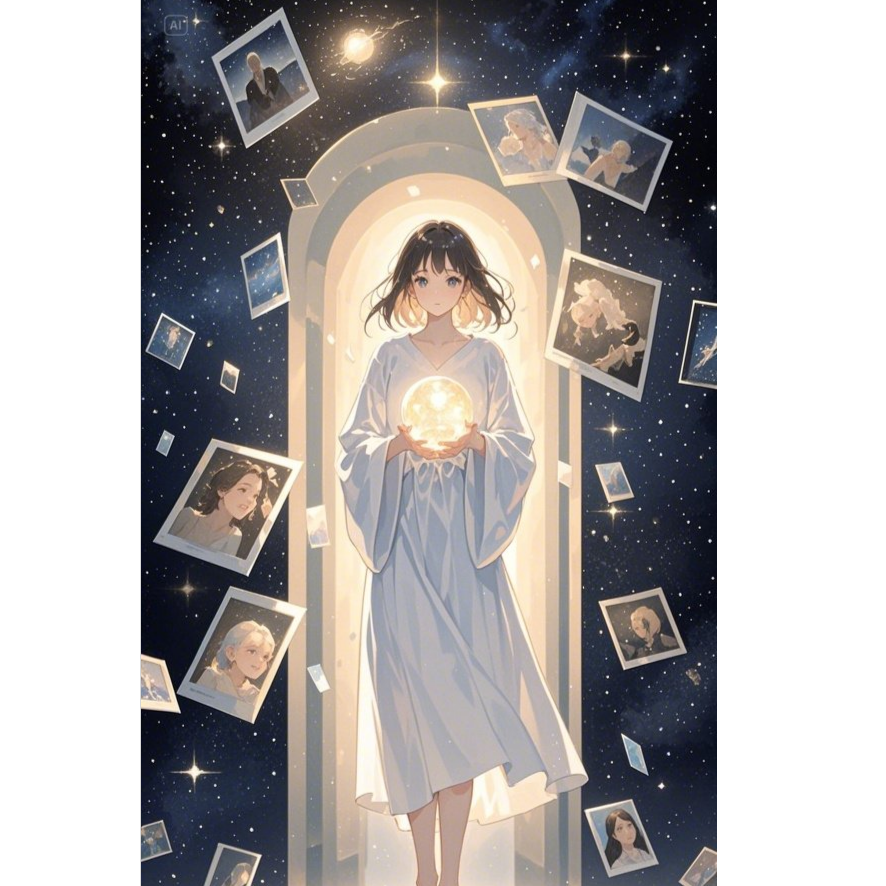 A bright and fast-paced Japanese anime-style pop song (J-pop) with a cute and gentle female vocal, Lofi-inspired electronic drums, soft synth pads, sparkly pluck sounds, and retro-futuristic chiptune elements, The song is themed around a soul choosing her next life before reincarnation, Uplifting, emotional, and dreamy atmosphere with cosmic vibes, Tempo: 130 BPM, Perfect for magical girl transformation scenes or reincarnation-themed anime opening