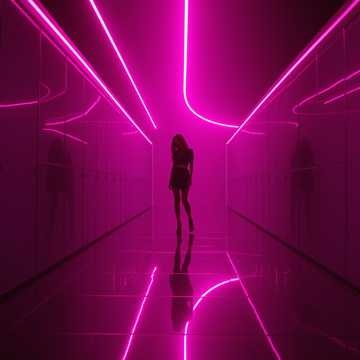 Glassy electronic runway groove for fashion show BGM, mid-tempo with tight sidechained kick and crisp hi-hats, shimmering synth arps tracing the “footsteps, ” bass pulsing in lockstep, Verses hint at mystery with filtered pads; chorus widens with bright top-line plucks and airy vocal chops, Sparse breakdown halfway, then a layered, hypnotic build back into the full beat