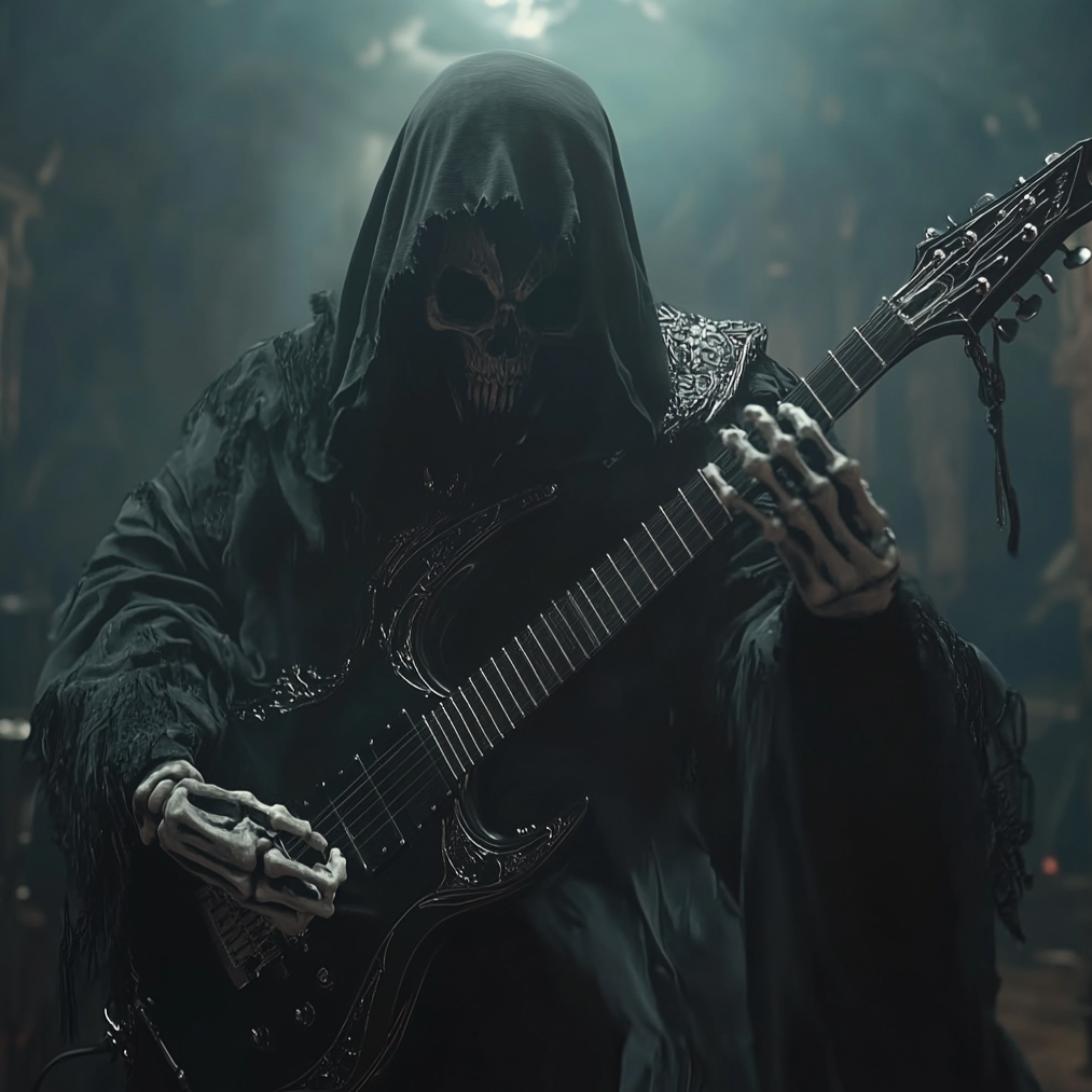 Vocals: Whispered or chanted Satanic incantations, layered with reverb and echo, Voice should sound inhuman, detached, or possessed, Inspiration: The Omen, Mayhem, Hereditary OST, The Exorcist, Deathspell Omega