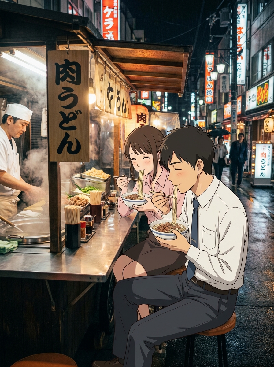 Tone: 「夜景と出汁の融合」—大人っぽいおしゃれ肉うどんシティポップ