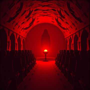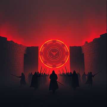 An urgent, fast-paced track driven by layered cultist chanting, pulsating bass, and relentless, tight drums, Chants form the rhythmic backbone, intertwining with aggressive low-end and rapid snare patterns, Percussive breaks intensify the ritualistic mood before a climactic, explosive ending