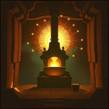 Crackling furnace blasts, hammering anvils like thunder, molten metal pours and sizzling steam, Grinding industrial percussion, roaring flames SFX, layered with guttural invocations and ecstatic cries of transformation, Vocals: Deep, resonant baritone chants in verses, escalating to multi-tracked, scorched screams in the chorus, Tempo: 140 BPM, searing distortion and heat-warped echoes evoking the Forge of Days' unceasing crucible