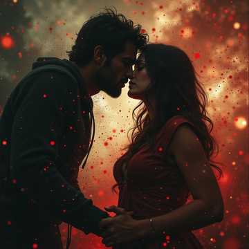 A female voice ignites gothic fire over relentless industrial metal, driven by rapid tempos and aggressive riffs, The duet thrives on violent contrast: soaring melodies clash with guttural shouts and breakneck metalcore breakdowns, Furious drums and distorted guitars collide with industrial beats, crafting a storm of chaos and intensity, Shards of electronic noise slice through the mix, amplifying speed and urgency, This is a sound where beauty is devoured by brutality, yet both coexist in a fierce, unrelenting sonic assault