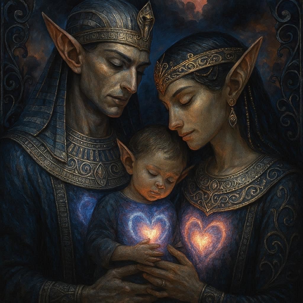 mournful elven, deep male vocal polyphonies, choral, rhythmic, drone, male vocals, distant male choral background drone building to sudden halt with reverb, soft, muted deep bass percussion with surfacing metallic bow sounds, minimal instrumentation, deep, vocal, giving way to soft matte complex mournful spanish guitar solo with distant slow muffled primal beat, metal, minimal, slow, male vocal chants in elven tongue, background deep bass male voice humming and rhythmic breath sounds at key intervals, complex