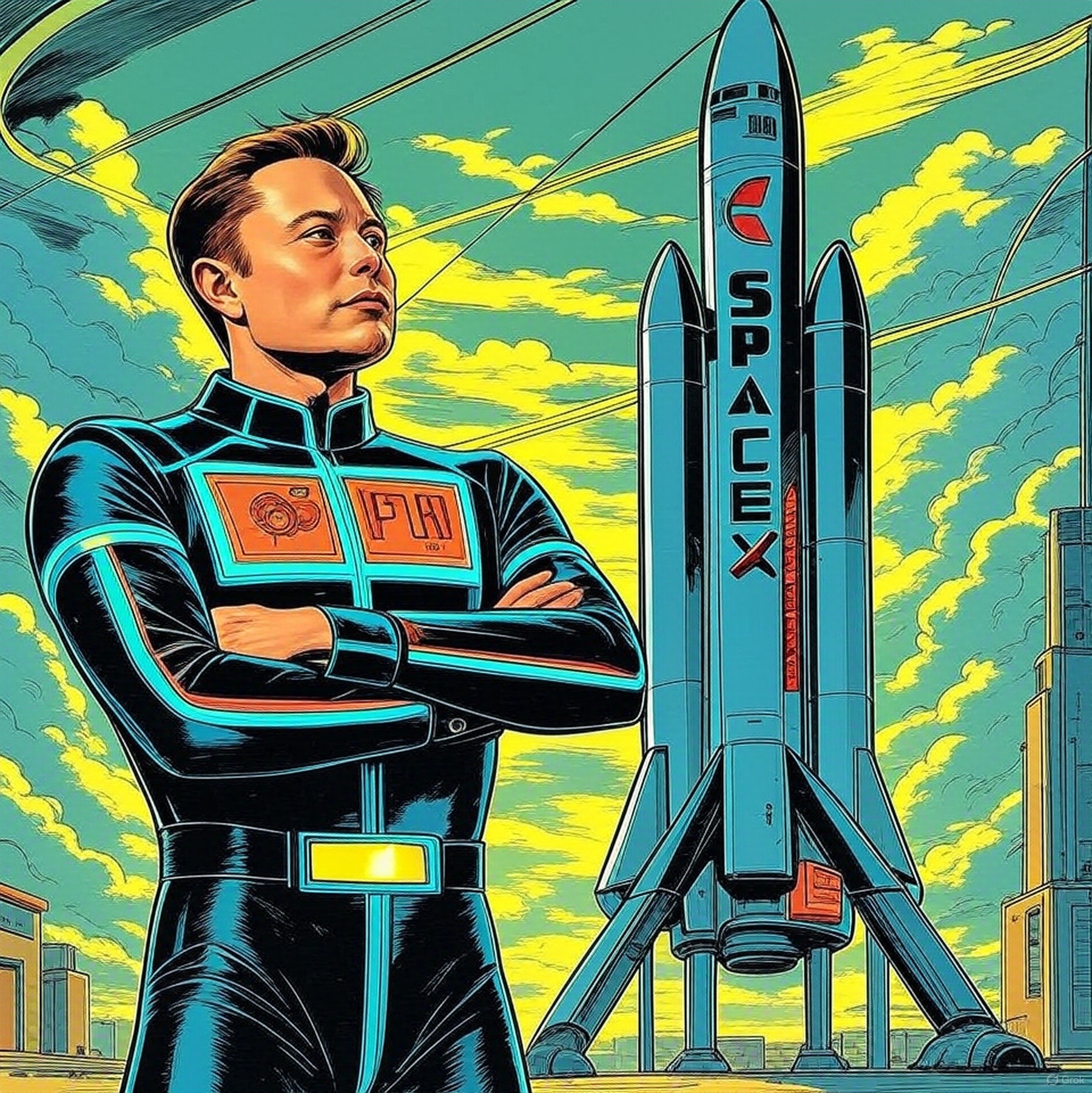 Futuristic Space wave, Deep Chill, moderate atmosphere, psychedelic experimental synth pop, 80’s synth Wave, goth metal, new wave, Future pop, Soft Rock, Experimental synth wave, soft deep natural casual male voice with the accent of Elon Musk, robotic vocal narration where indicated, Industrial space age electronica, soft deep dub, ascending deep sub bass drones, Minimal electric guitar, French Horns, muted echoed beeps, complex male vocal harmonies on chorus, space age soundscapes