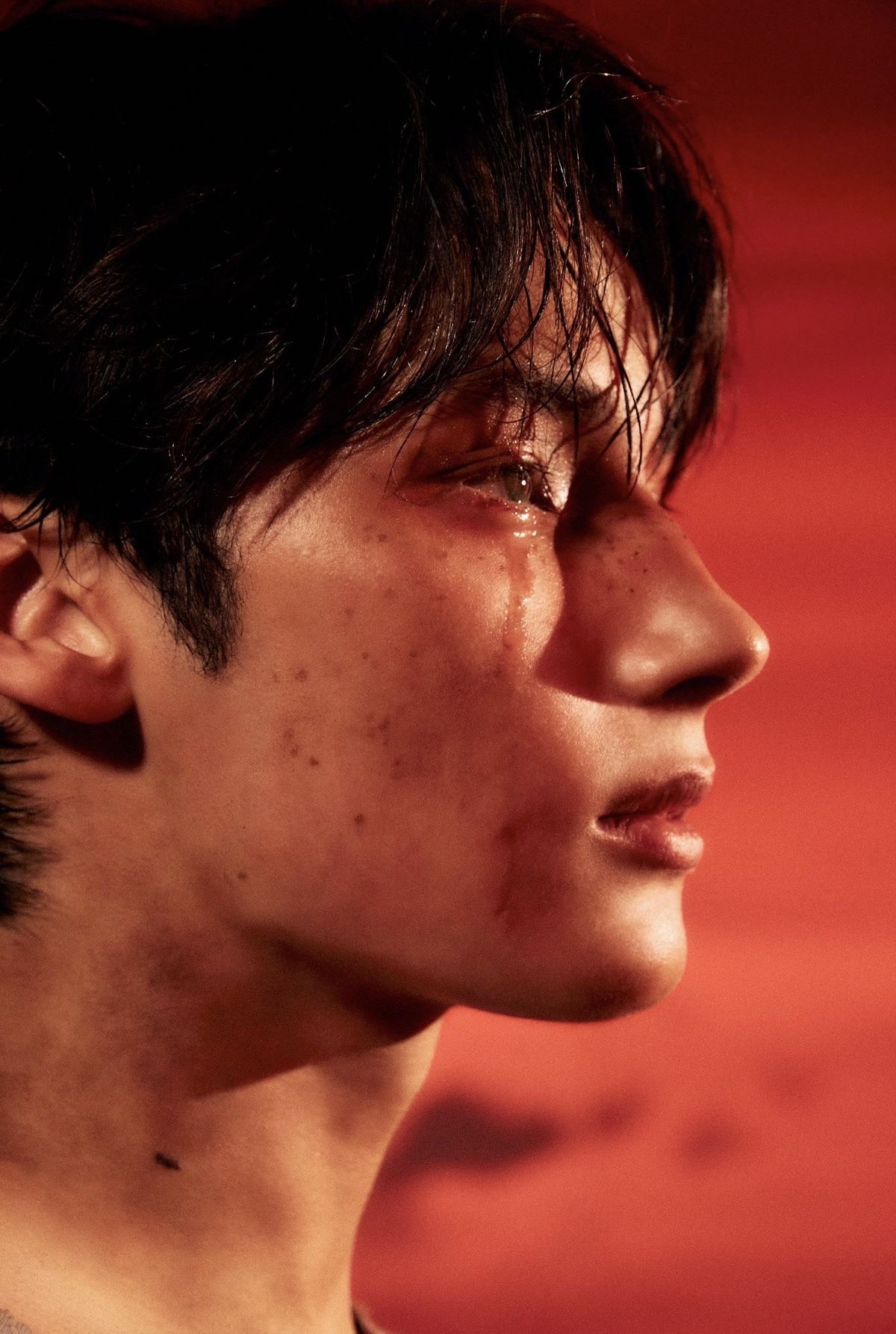orchestral, cinematic, kpop, 7 male vocals, boy group, Ethereal and hypnotic, little bit of rap, High-intensity staccato string, Trap-inspired 808 kick, confident, powerful, Deep sub-bass, dark, Reverse reverb Sweeping, cinematic strings, Layered string effects