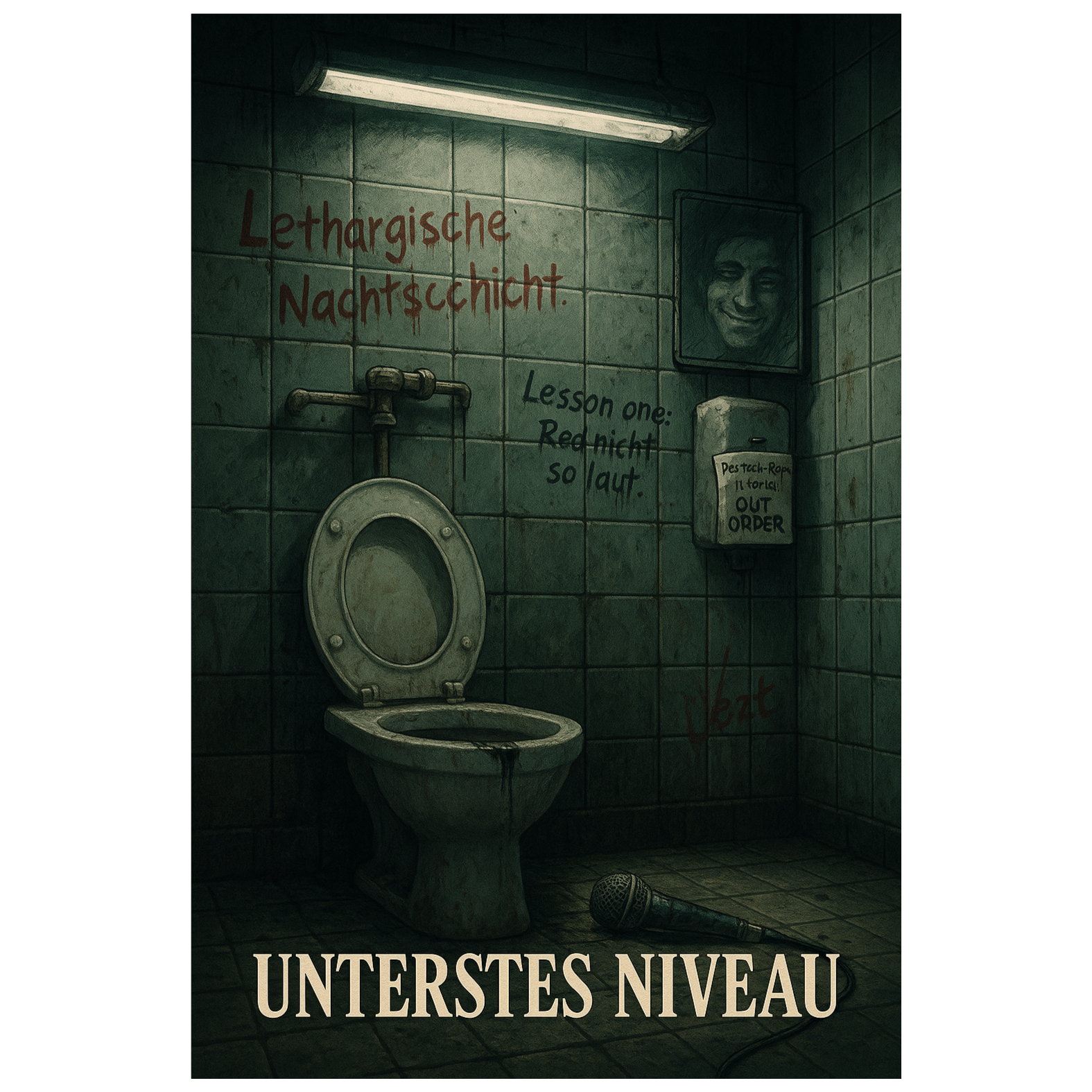 dry cynical spoken-word/rap delivery with sharp consonant articulation, sadistic tonal bite patterns, corrosive micro-emphasis and abrupt dynamic spikes; cold dark low-end electronic tension; pressure-driven subbass layers, controlled subharmonic pads, digitally-clean low-mid pulses, zero-high synth domain; tight broken-pulse percussion with micro-accent drift and low-frequency transient emphasis; modern non-retro timbre architecture with granular low-end textures and cold-band digital modulation; hook/bridge interruptions formed by narrow-band spectral collapse, mechanical surface-noise artifacts, hard-cut degradation events, and transient band-limited dropouts, ‑industrial, ‑Bright Synth, ‑High-Frequency Synth, ‑Treble-Heavy Synth, ‑treble-focused synth layer, ‑poor vocal definition