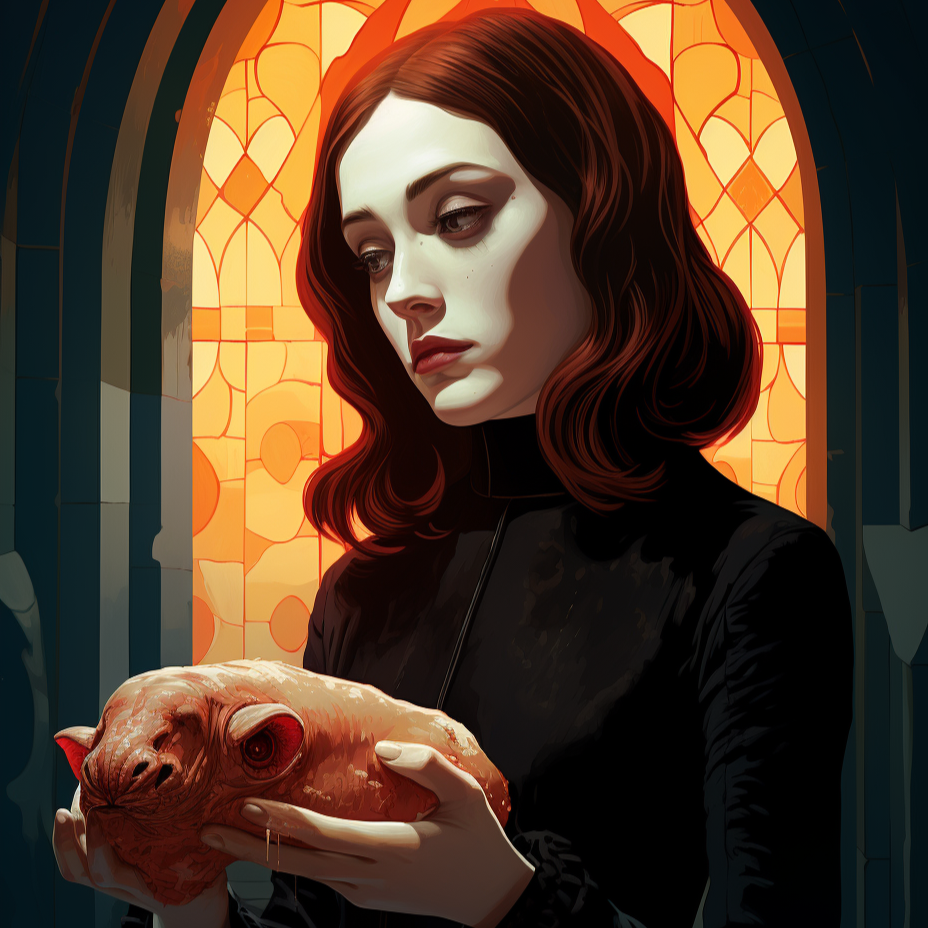 A dark, moody soundtrack steeped in unsettling atmosphere, Low, pulsing bass and haunting piano echo beneath creeping strings, while eerie female whispers distort into broken chants, The music sways between fragile quiet and sudden bursts of chaotic rhythm, mirroring a descent into insanity, Layers of dissonant guitars and distorted sound effects create a surreal, unsteady world — like wandering the crumbling corridors of a broken mind, The sound should feel heavy, rich, and cinematic, with chilling depth and unpredictable surges of madness
