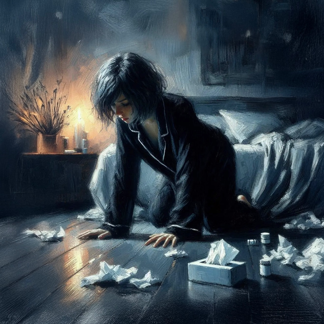 This haunting cyberwave ballad unfolds over sparse glitch-trap beats and swelling, textured pads, Deep, sustained sub-bass anchors the pace as androgynous AI vocals—soaked in heavy reverb and vocoder—ebb amid fluttering melodic synths, precise glitches, and ghostly harmonies, Verses retreat into shadowy atmospheres, while choruses burst with shimmering cybernetic arpeggios, icy effects, and videogame-inspired motifs, weaving a broken yet ethereal cyberpunk soundscape