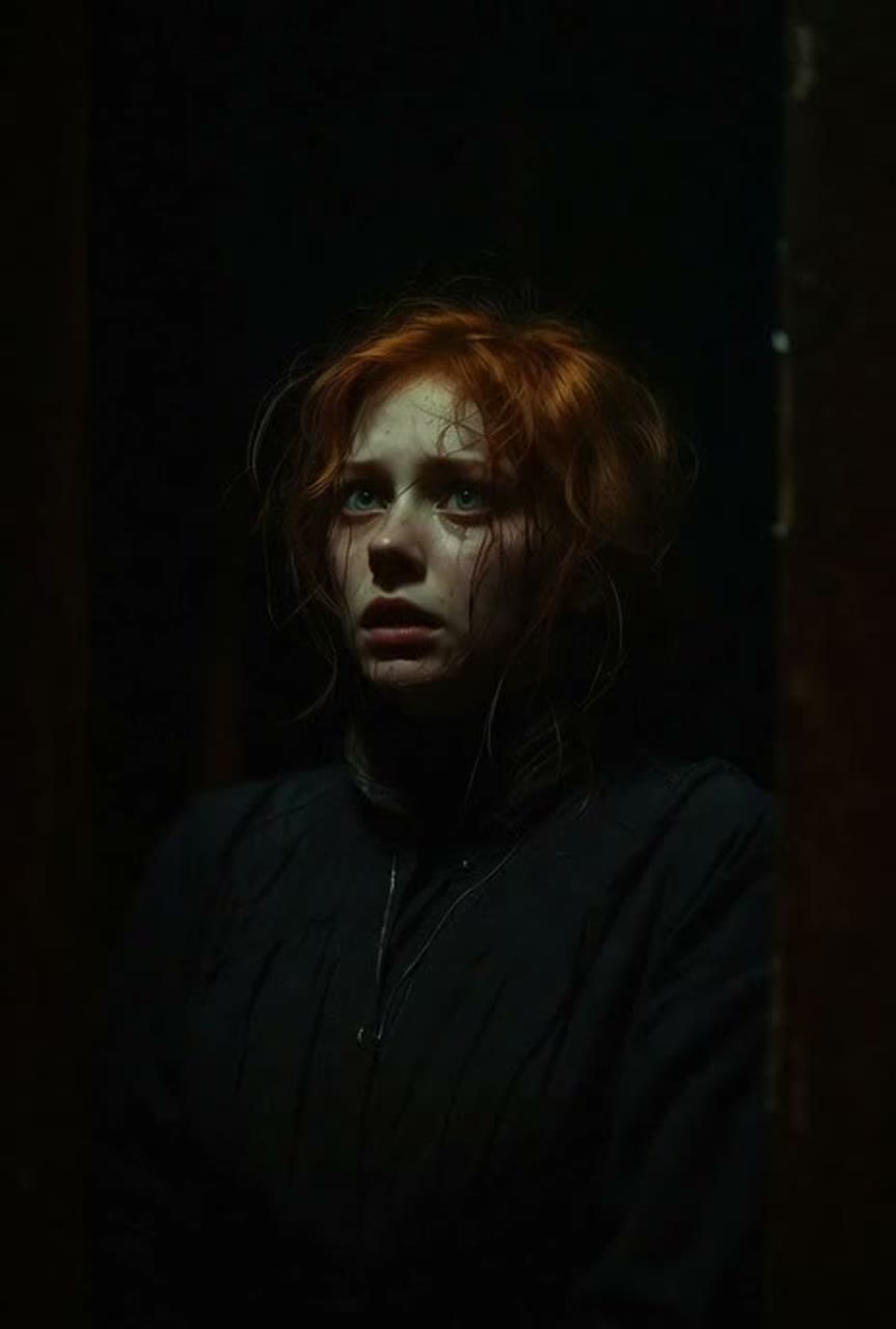 The song unfolds with dark cinematic strings, dissonant violins, and brooding low drones, accentuated by thunder, heavy rain, and howling wind, Faint sirens bleed into the mix, Background sounds—door knocks, chain rattles, metallic echoes, anxious breathing—punctuate the mood, Female vocals whisper through trembling verses, drifting with creepy echoes, then escalate into layered, raw screaming choruses using 8D and 6D effects to swirl around the listener, The arrangement builds intensity, evoking claustrophobia and psychological terror, before resolving into tense, sparse instrumentation and fading sound design, signaling survival