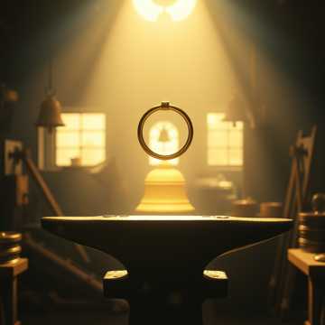 Distant church bells, metallic echoes, workshop-like ambience, Sense of craft, hands shaping meaning