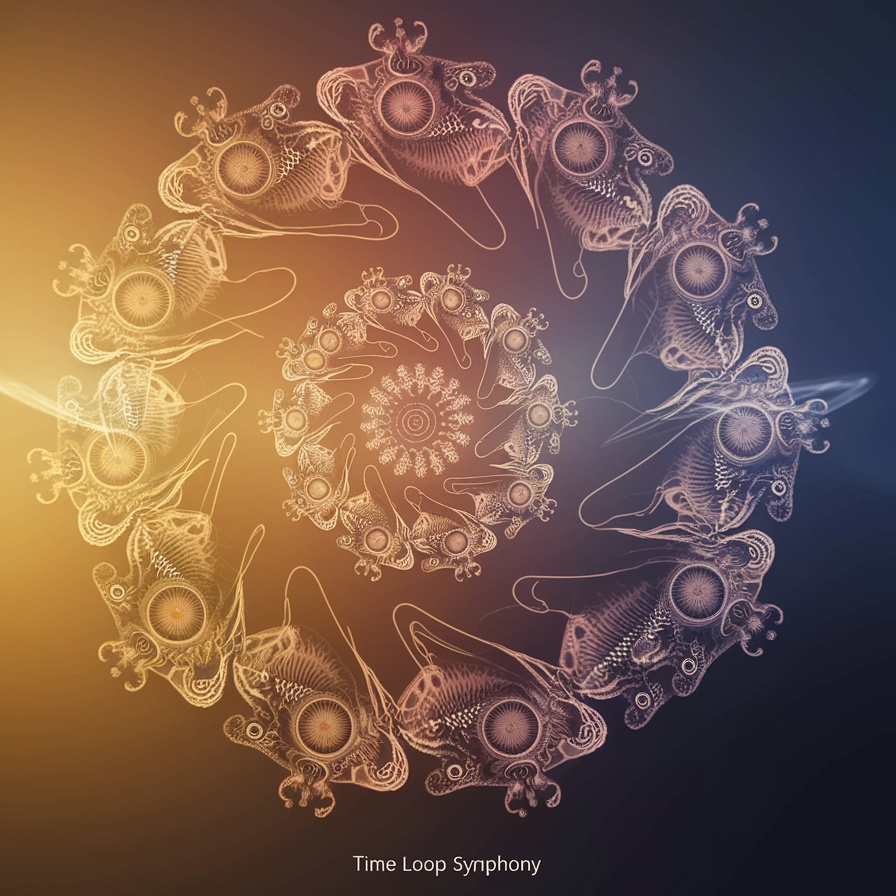 Experimental, recursive harmonies, evolving soundscapes, unpredictable structures, melodic spirals, cosmic, shifting tonal layers, kaleidoscopic synths, subtle polyrhythms, abstract resonance